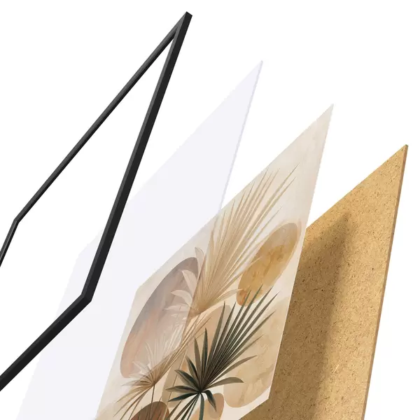 Plakat składa się z ramy, pleksi, wydrukowanego obrazu i podkładu z płyty wiórowej. Plakat można natychmiast zawiesić na ścianie dzięki uchwytom z tyłu.