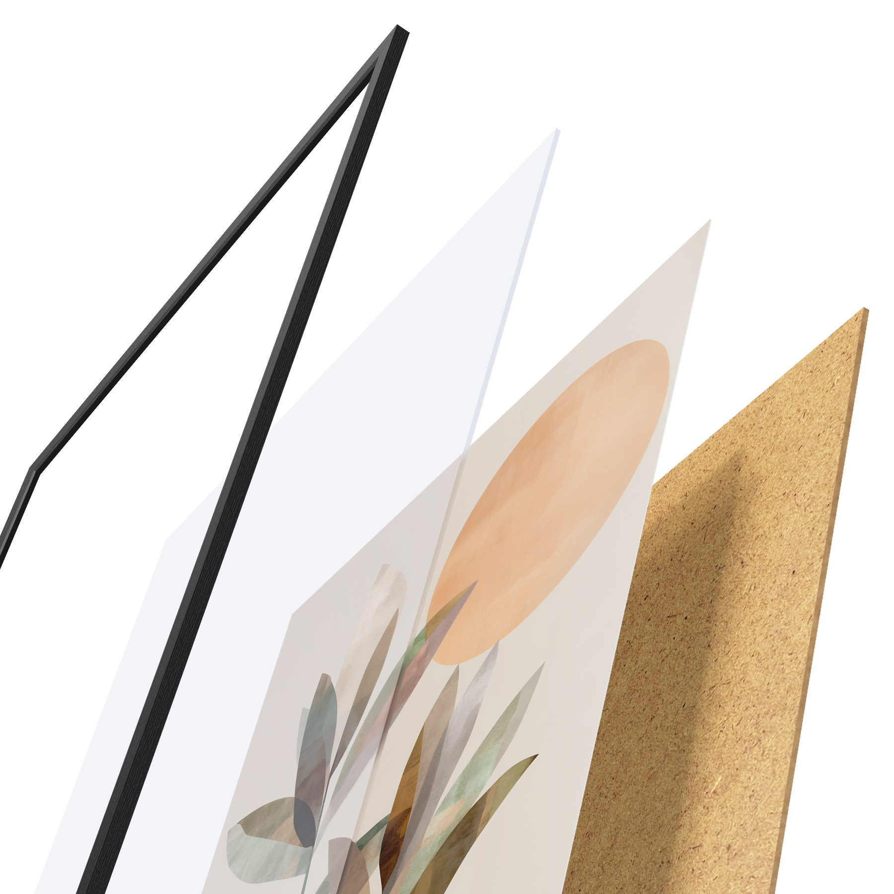Plakat składa się z ramy, pleksi, wydrukowanego obrazu i podkładu z płyty wiórowej. Plakat można natychmiast zawiesić na ścianie dzięki uchwytom z tyłu.