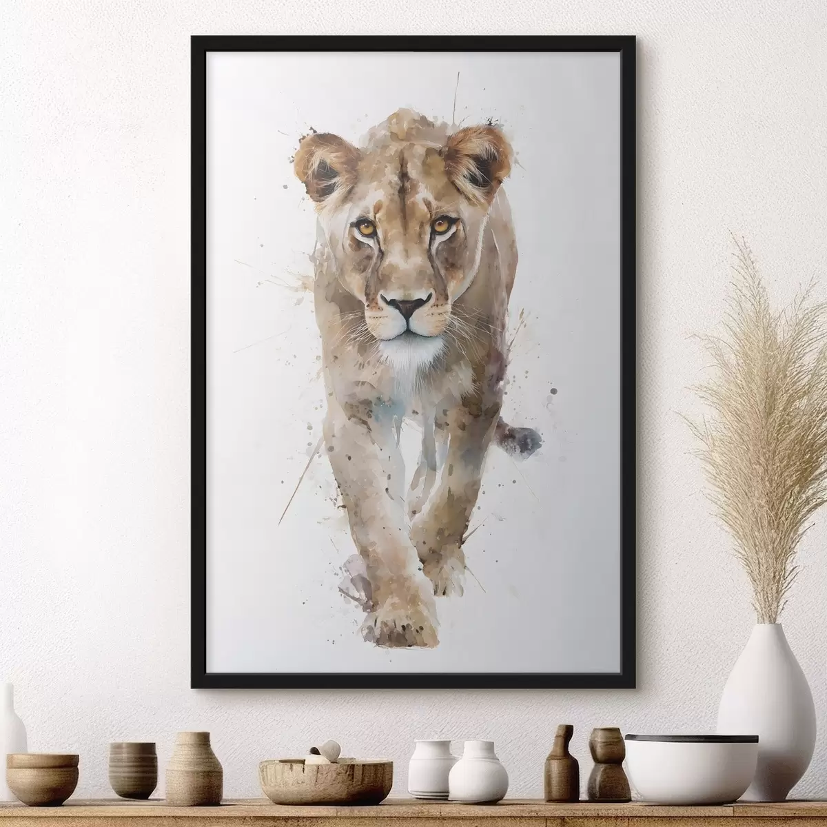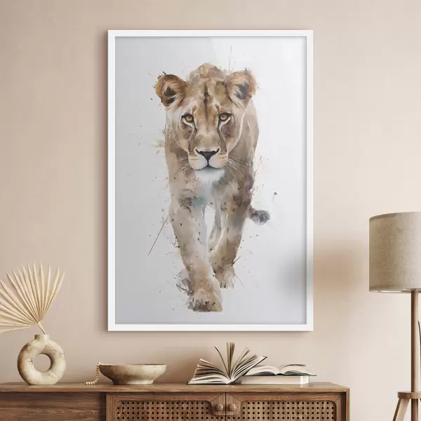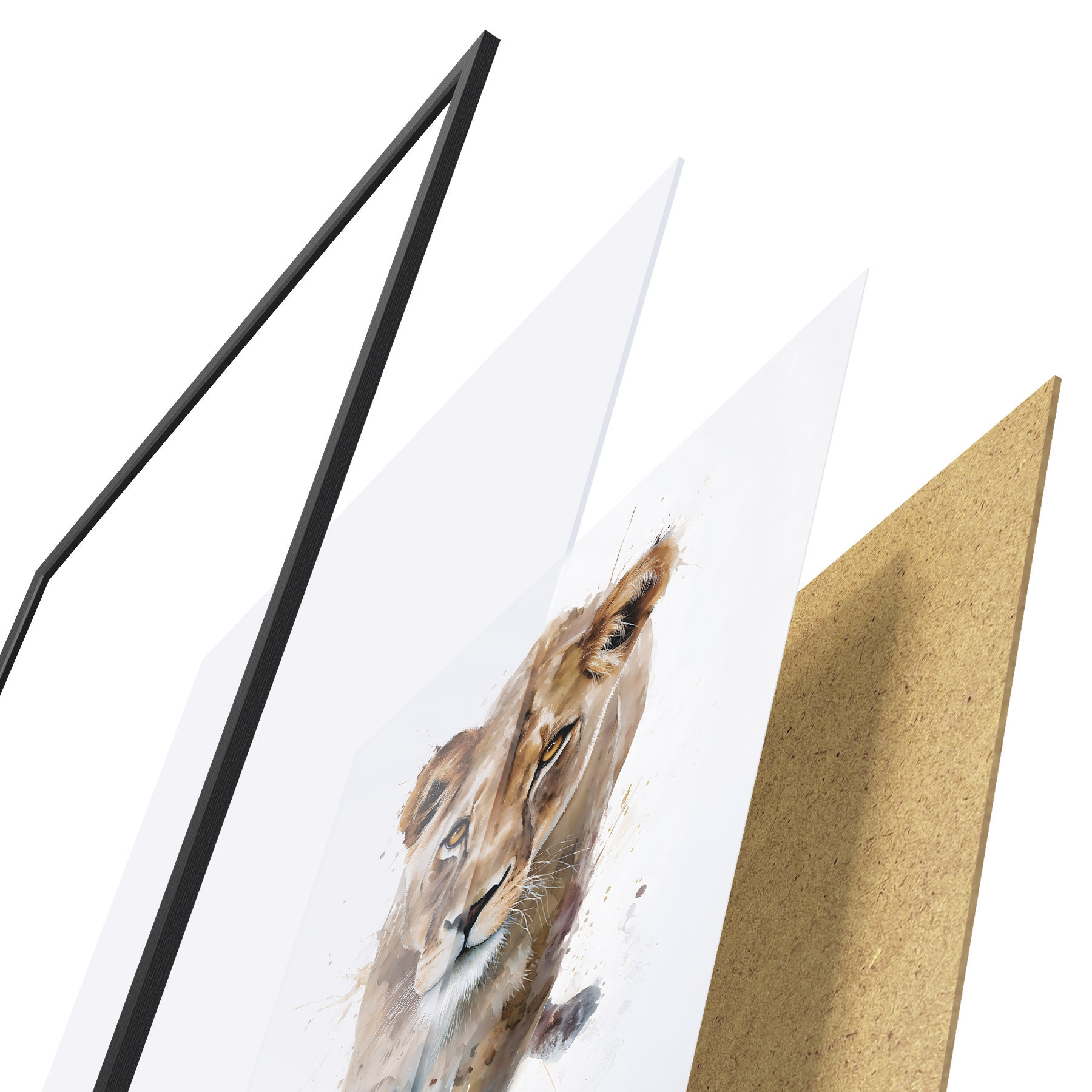 Plakat składa się z ramy, pleksi, wydrukowanego obrazu i podkładu z płyty wiórowej. Plakat można natychmiast zawiesić na ścianie dzięki uchwytom z tyłu.