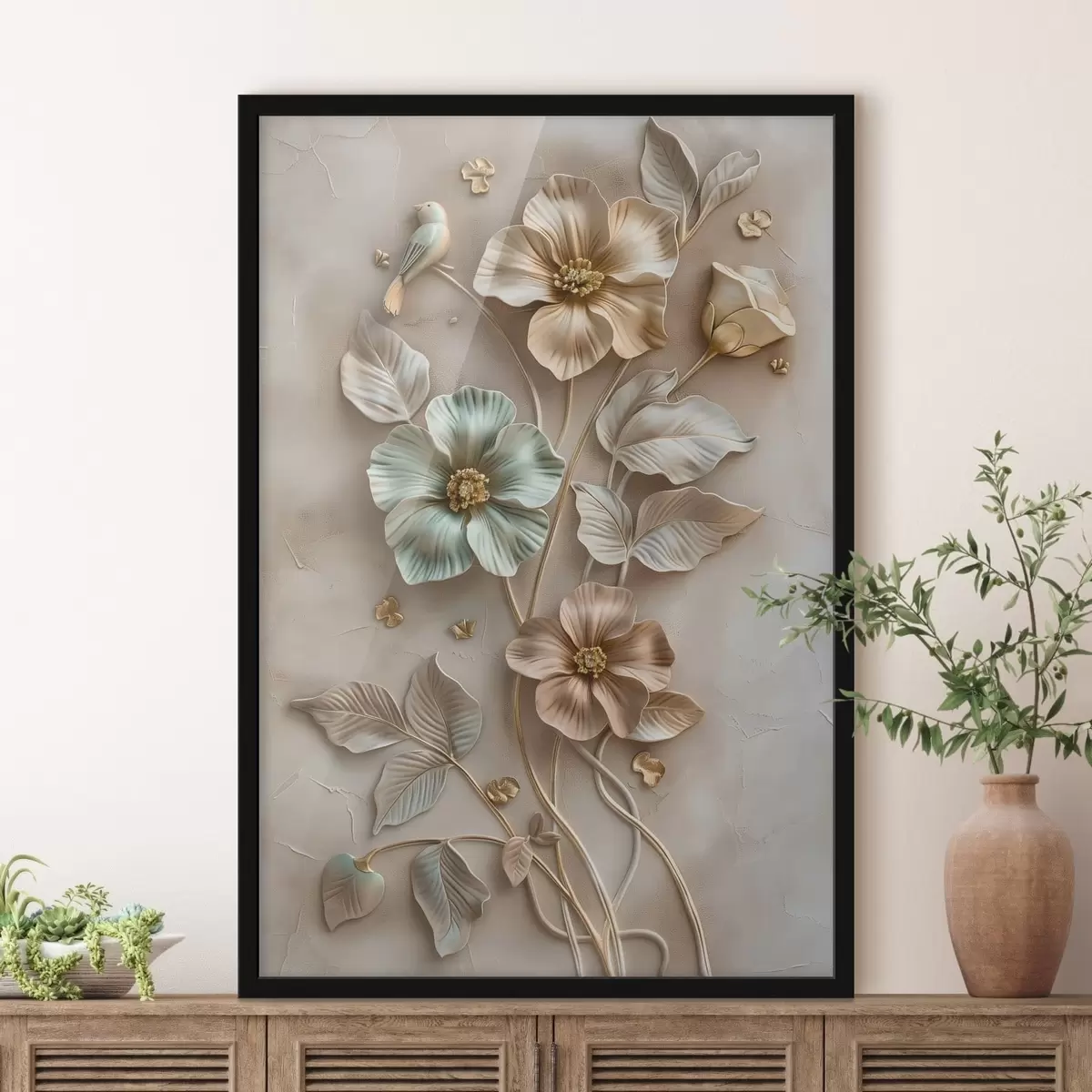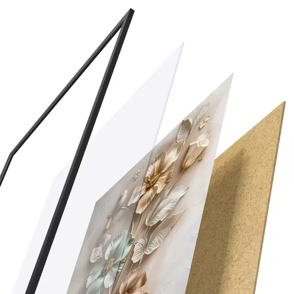 Plakat składa się z ramy, pleksi, wydrukowanego obrazu i podkładu z płyty wiórowej. Plakat można natychmiast zawiesić na ścianie dzięki uchwytom z tyłu.