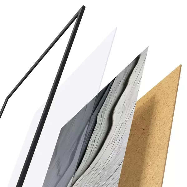 Plakat składa się z ramy, pleksi, wydrukowanego obrazu i podkładu z płyty wiórowej. Plakat można natychmiast zawiesić na ścianie dzięki uchwytom z tyłu.