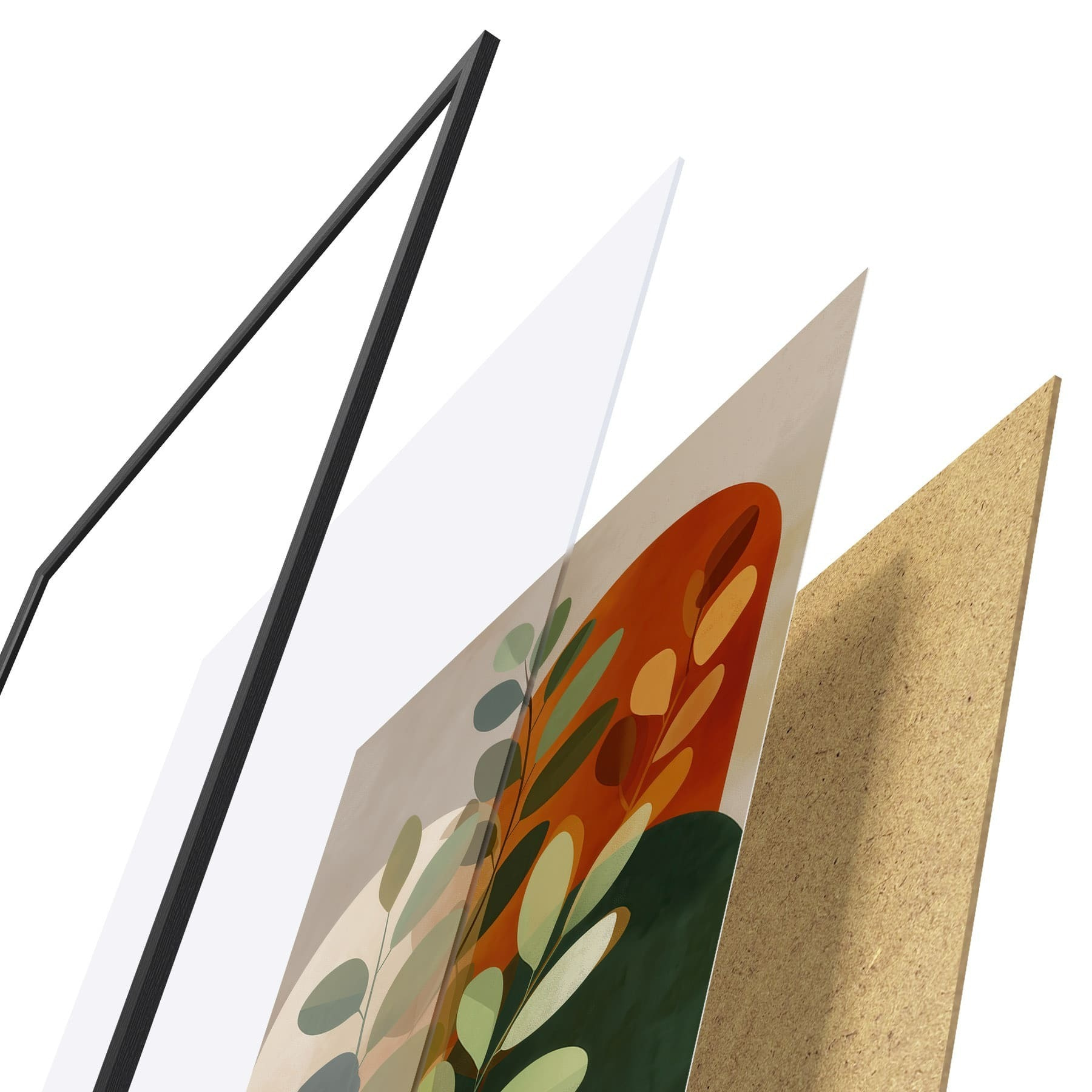 Plakat składa się z ramy, pleksi, wydrukowanego obrazu i podkładu z płyty wiórowej. Plakat można natychmiast zawiesić na ścianie dzięki uchwytom z tyłu.
