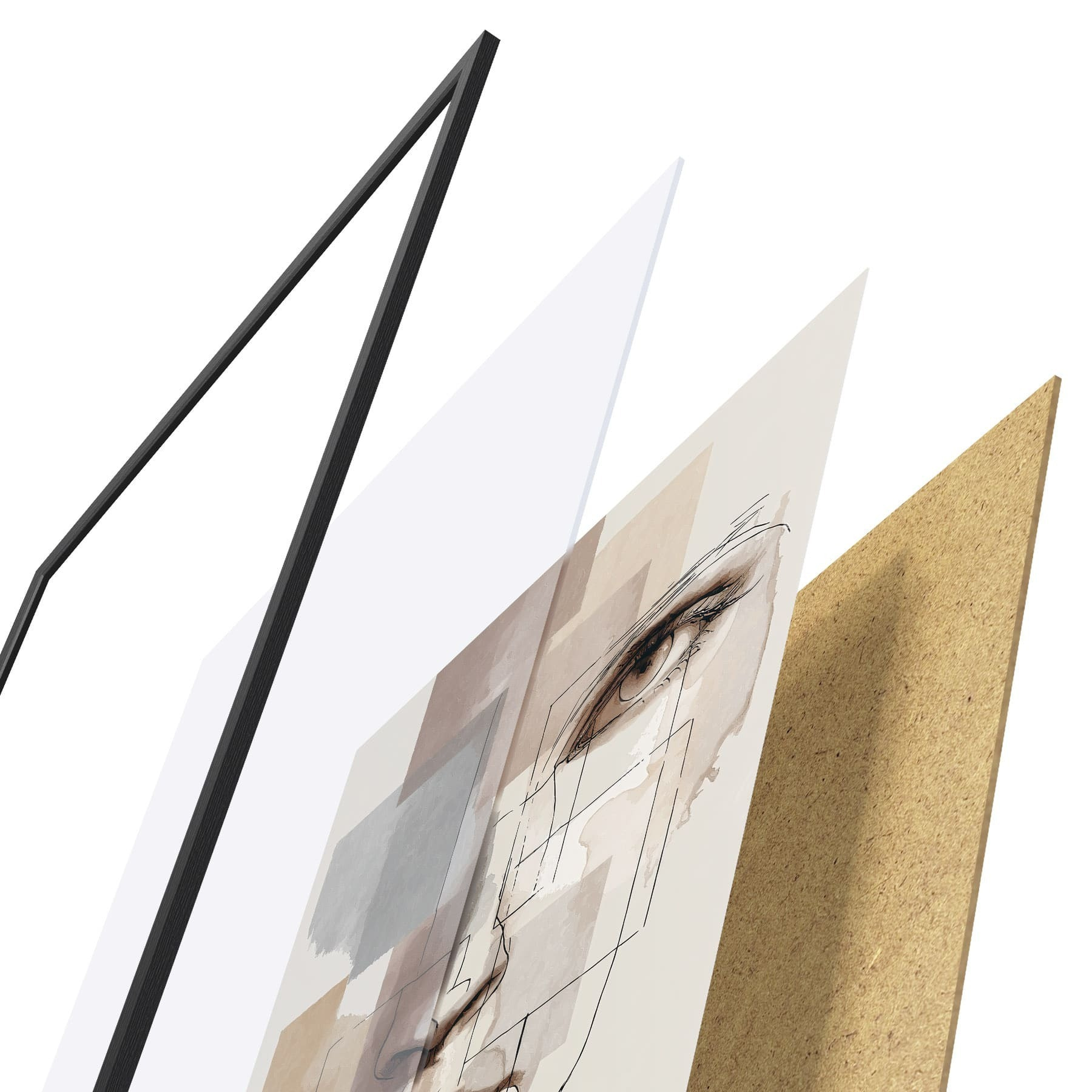 Plakat składa się z ramy, pleksi, wydrukowanego obrazu i podkładu z płyty wiórowej. Plakat można natychmiast zawiesić na ścianie dzięki uchwytom z tyłu.