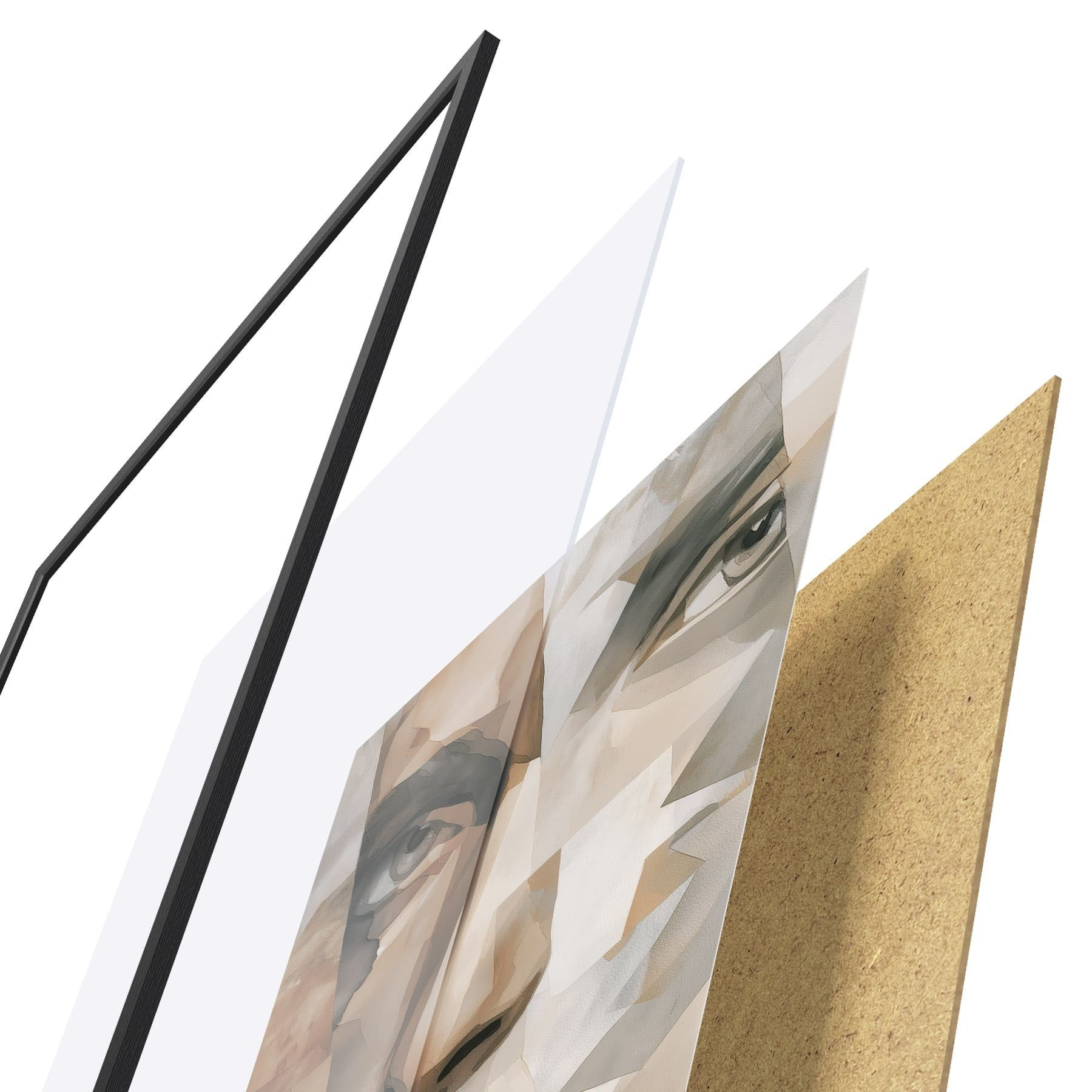 Plakat składa się z ramy, pleksi, wydrukowanego obrazu i podkładu z płyty wiórowej. Plakat można natychmiast zawiesić na ścianie dzięki uchwytom z tyłu.