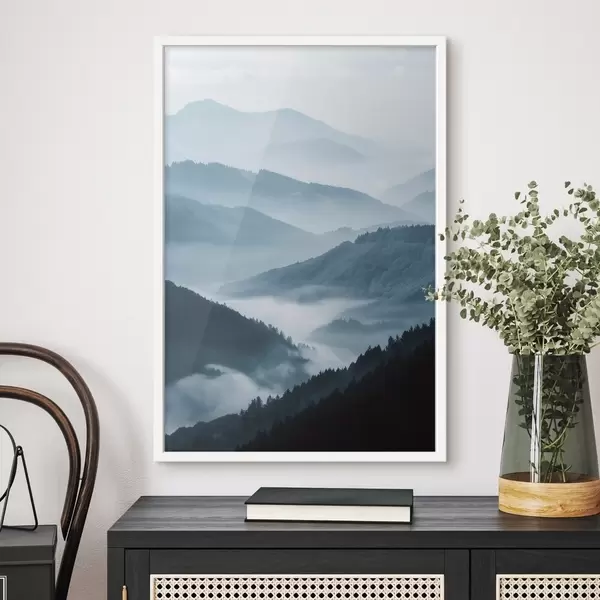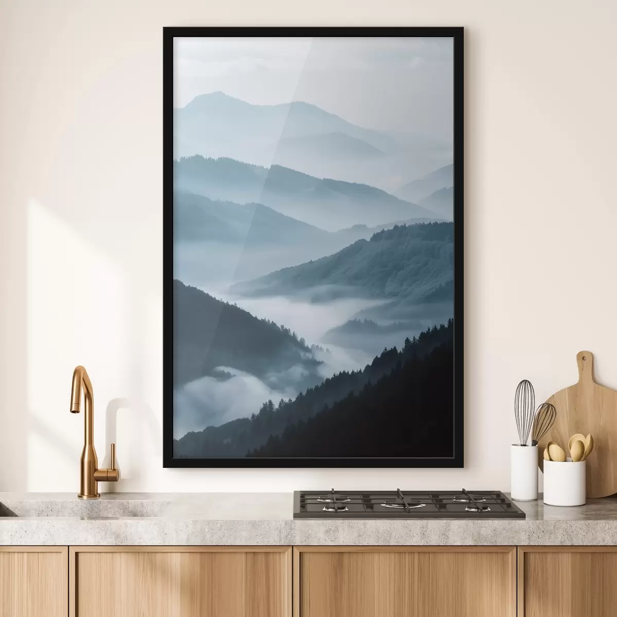Poster Zamglone góry, błękitny krajobraz Nr f48567