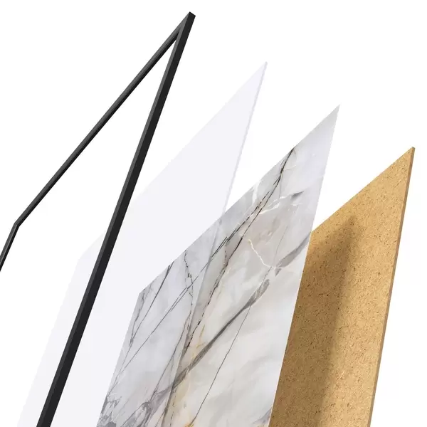 Plakat składa się z ramy, pleksi, wydrukowanego obrazu i podkładu z płyty wiórowej. Plakat można natychmiast zawiesić na ścianie dzięki uchwytom z tyłu.
