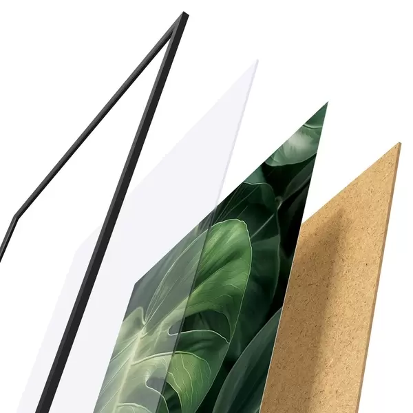 Plakat składa się z ramy, pleksi, wydrukowanego obrazu i podkładu z płyty wiórowej. Plakat można natychmiast zawiesić na ścianie dzięki uchwytom z tyłu.