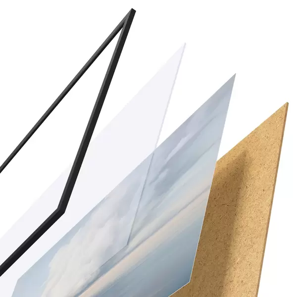 Plakat składa się z ramy, pleksi, wydrukowanego obrazu i podkładu z płyty wiórowej. Plakat można natychmiast zawiesić na ścianie dzięki uchwytom z tyłu.