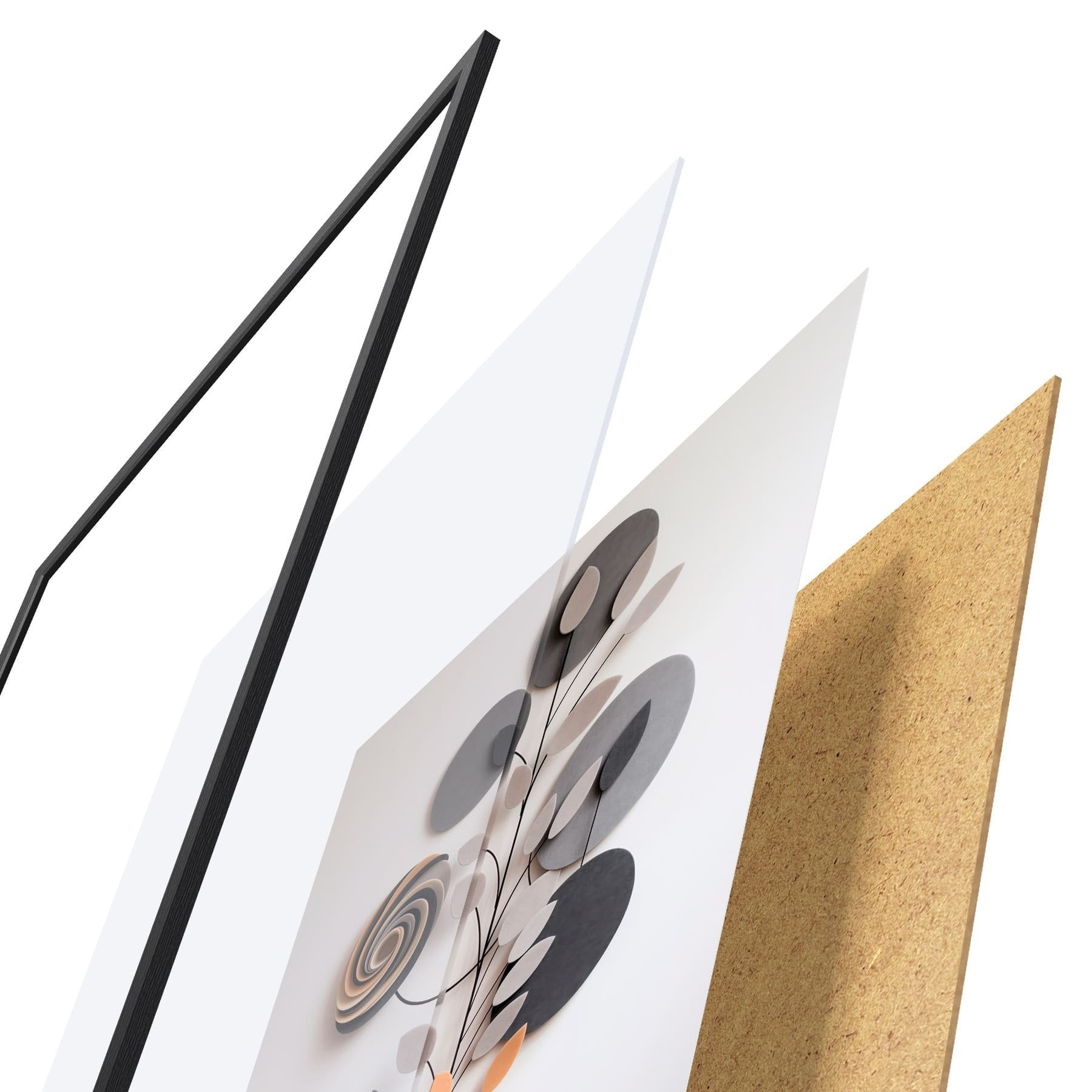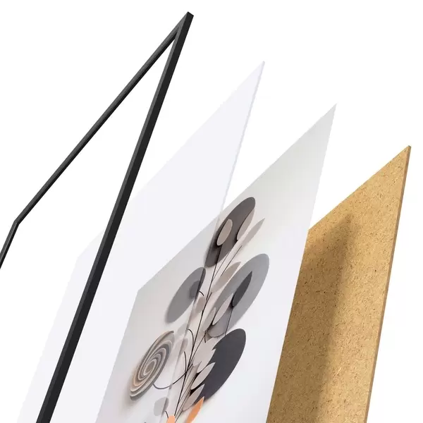 Plakat składa się z ramy, pleksi, wydrukowanego obrazu i podkładu z płyty wiórowej. Plakat można natychmiast zawiesić na ścianie dzięki uchwytom z tyłu.