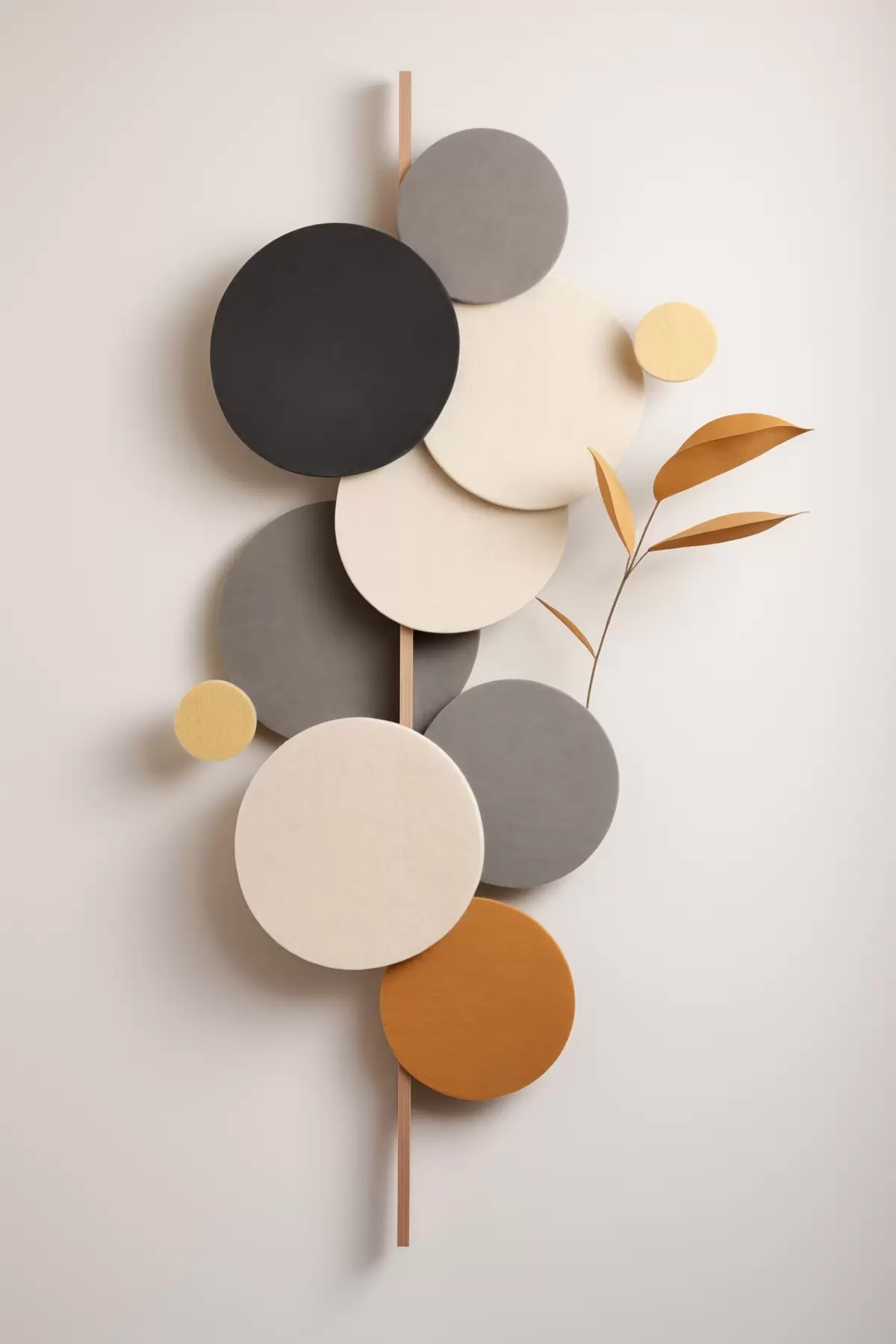 Plakat Abstrakcyjne koła z liśćmi w stonowanych barwach f48602