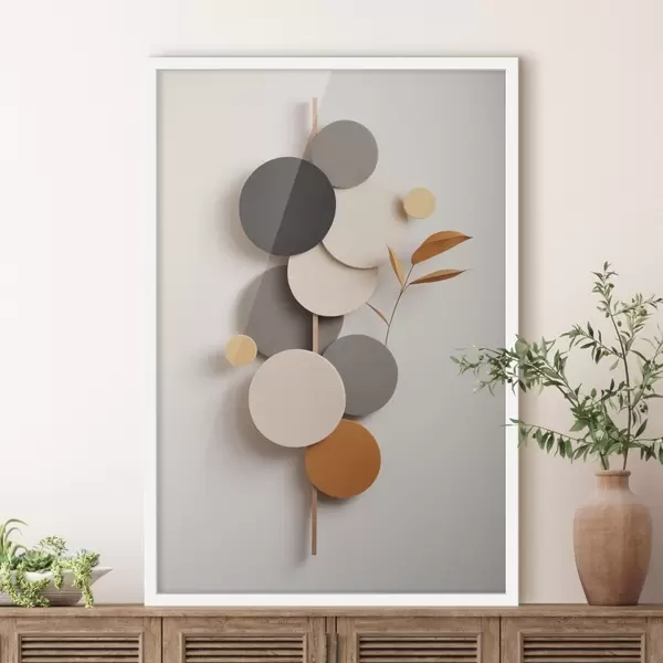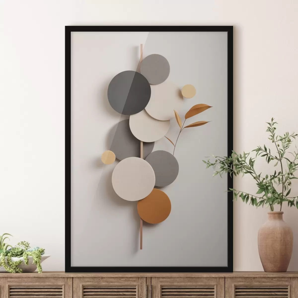 Poster Abstrakcyjne koła z liśćmi w stonowanych barwach Nr f48602