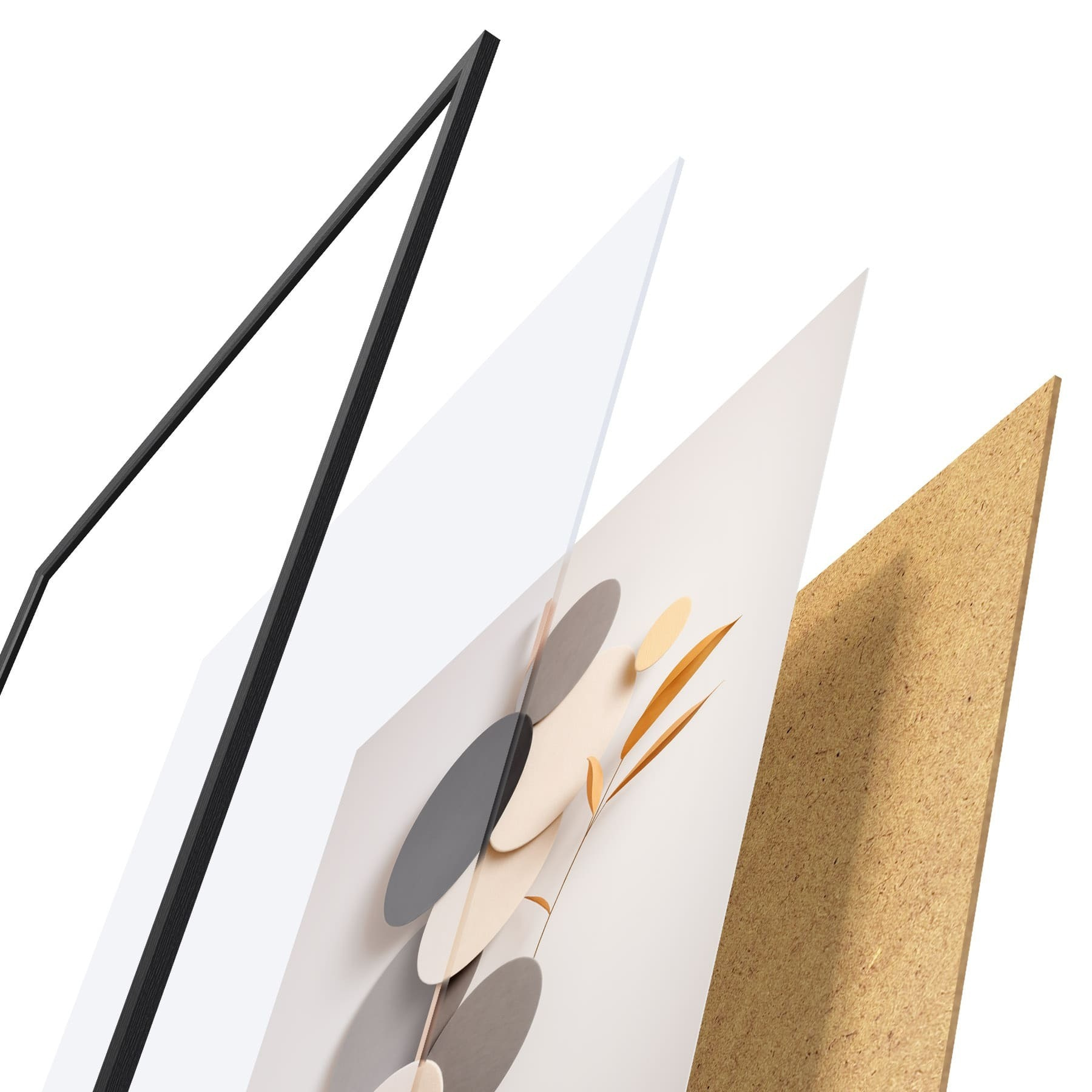 Plakat składa się z ramy, pleksi, wydrukowanego obrazu i podkładu z płyty wiórowej. Plakat można natychmiast zawiesić na ścianie dzięki uchwytom z tyłu.