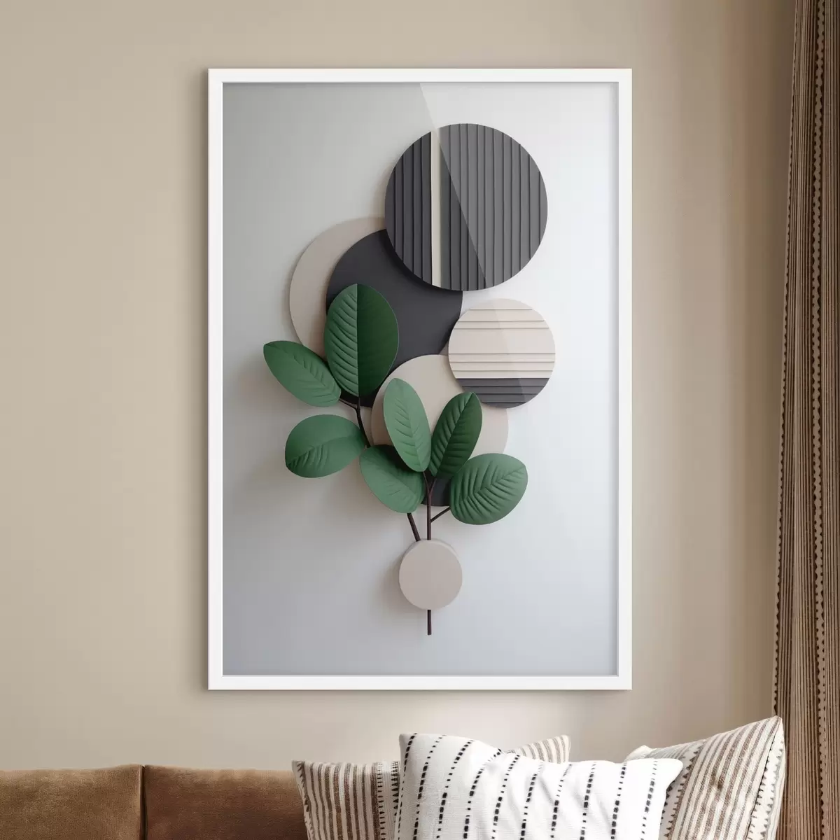 Plakat Zielone liście z okrągłymi, reliefowymi elementami f48603