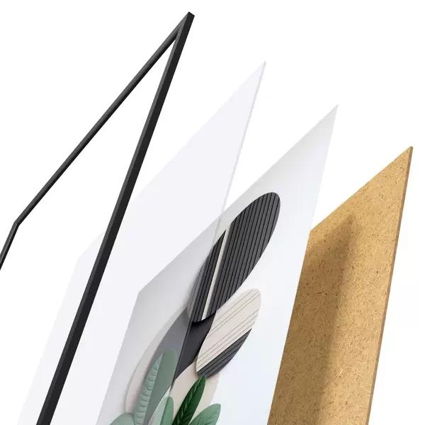Plakat składa się z ramy, pleksi, wydrukowanego obrazu i podkładu z płyty wiórowej. Plakat można natychmiast zawiesić na ścianie dzięki uchwytom z tyłu.