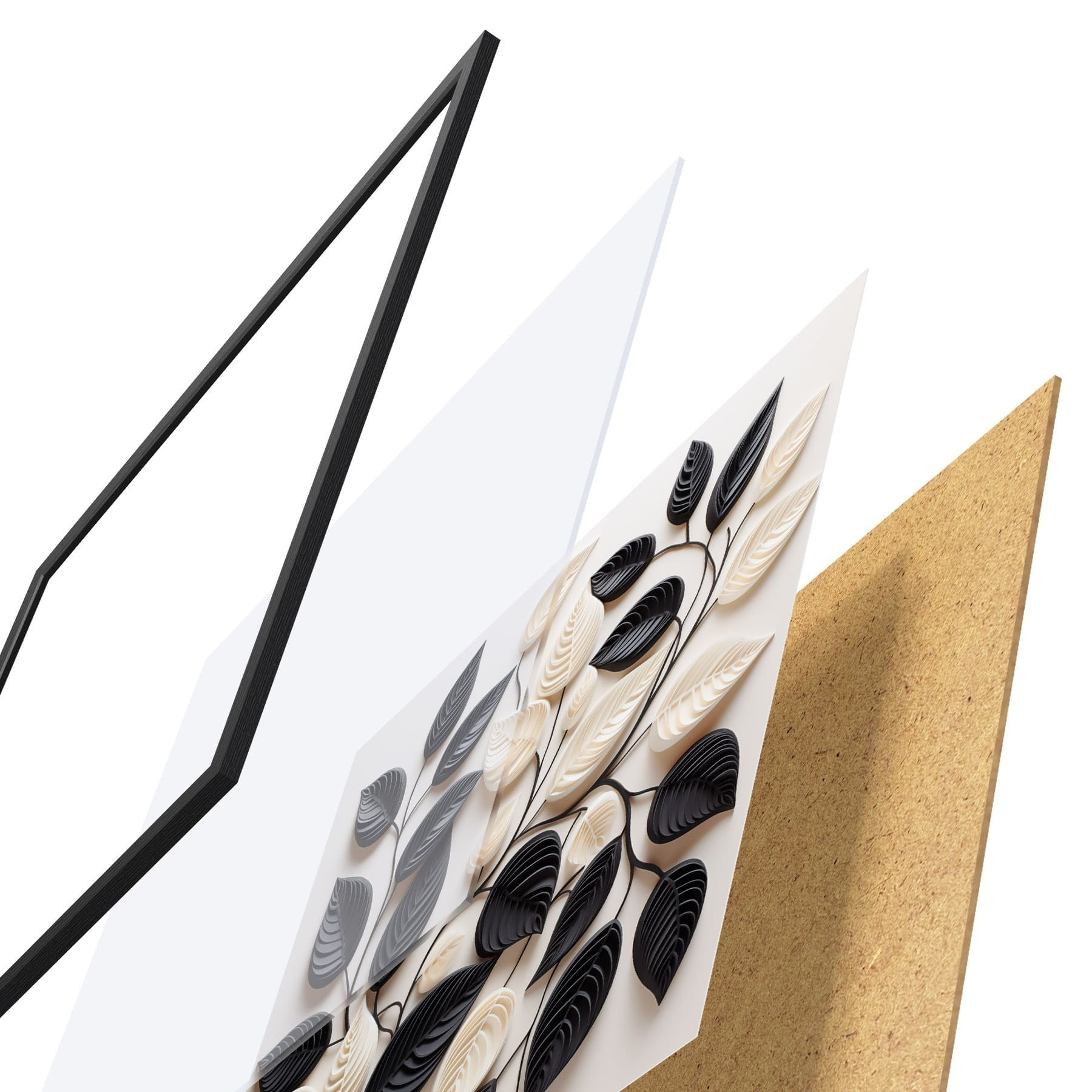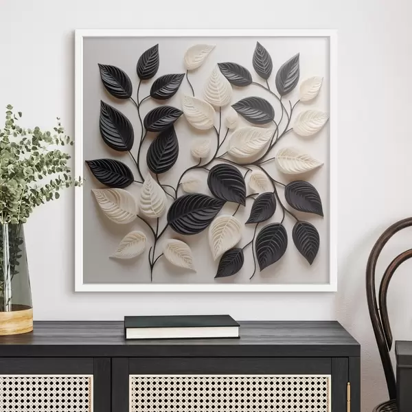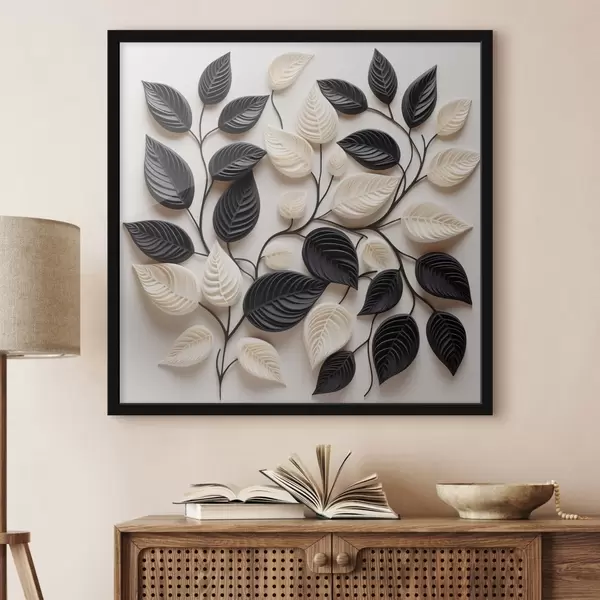 Poster Kompozycja z czarnych i jasnych liści na gałęziach Nr f48606