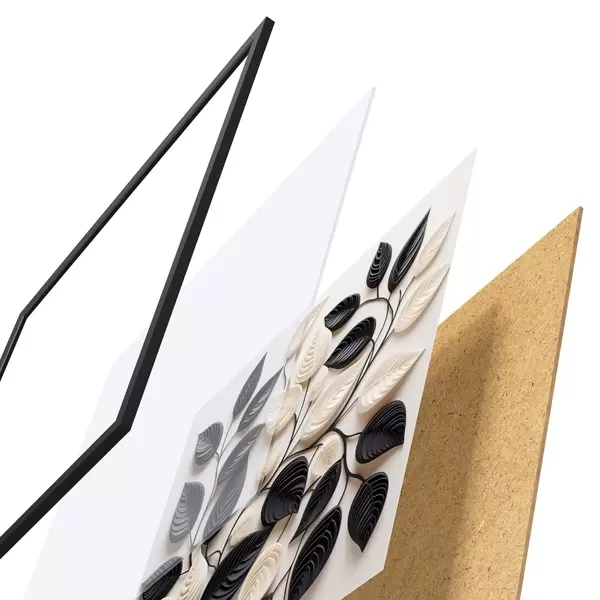 Plakat składa się z ramy, pleksi, wydrukowanego obrazu i podkładu z płyty wiórowej. Plakat można natychmiast zawiesić na ścianie dzięki uchwytom z tyłu.