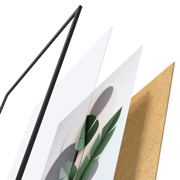 Plakat składa się z ramy, pleksi, wydrukowanego obrazu i podkładu z płyty wiórowej. Plakat można natychmiast zawiesić na ścianie dzięki uchwytom z tyłu.