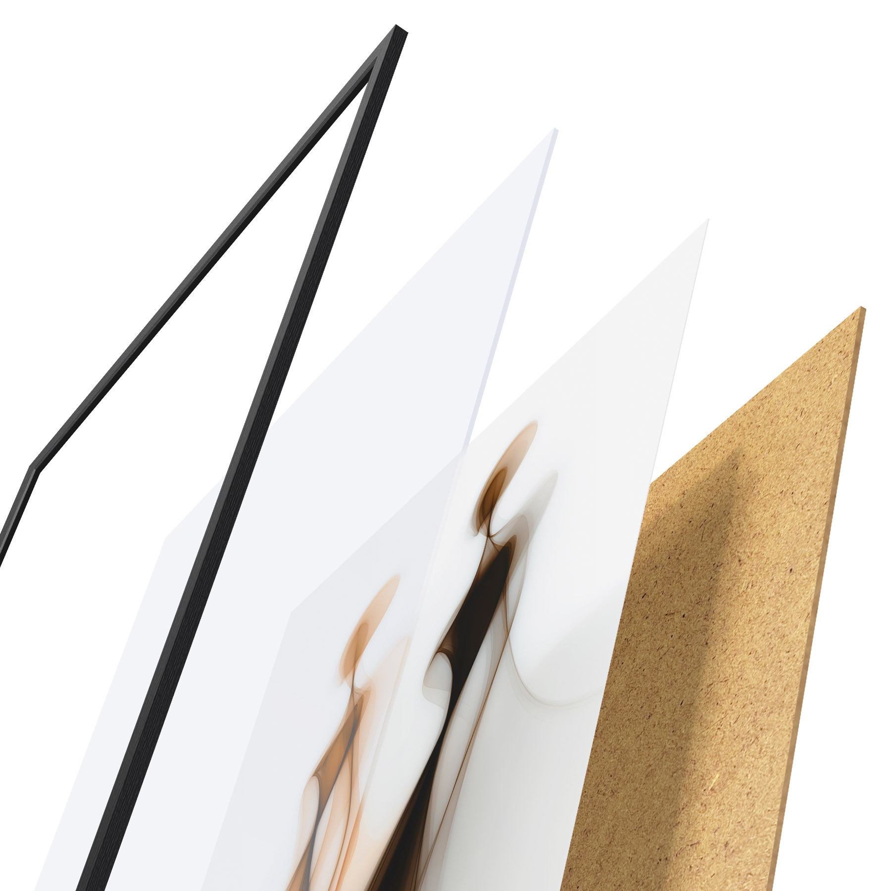 Plakat składa się z ramy, pleksi, wydrukowanego obrazu i podkładu z płyty wiórowej. Plakat można natychmiast zawiesić na ścianie dzięki uchwytom z tyłu.