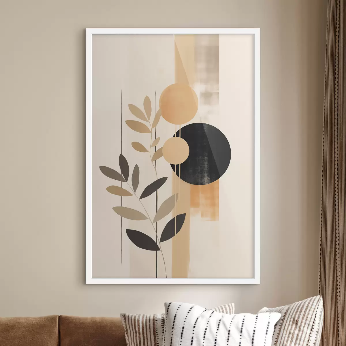Plakat Kompozycja abstrakcyjna z liśćmi i okręgami f48613