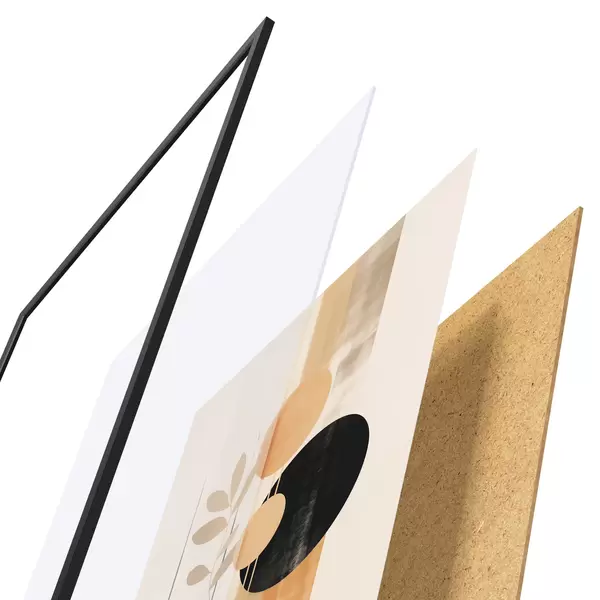 Plakat składa się z ramy, pleksi, wydrukowanego obrazu i podkładu z płyty wiórowej. Plakat można natychmiast zawiesić na ścianie dzięki uchwytom z tyłu.