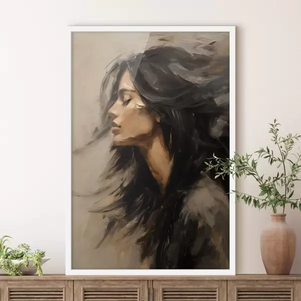 Plakat Portret kobiety z rozwianymi włosami w stylu malarskim f48622