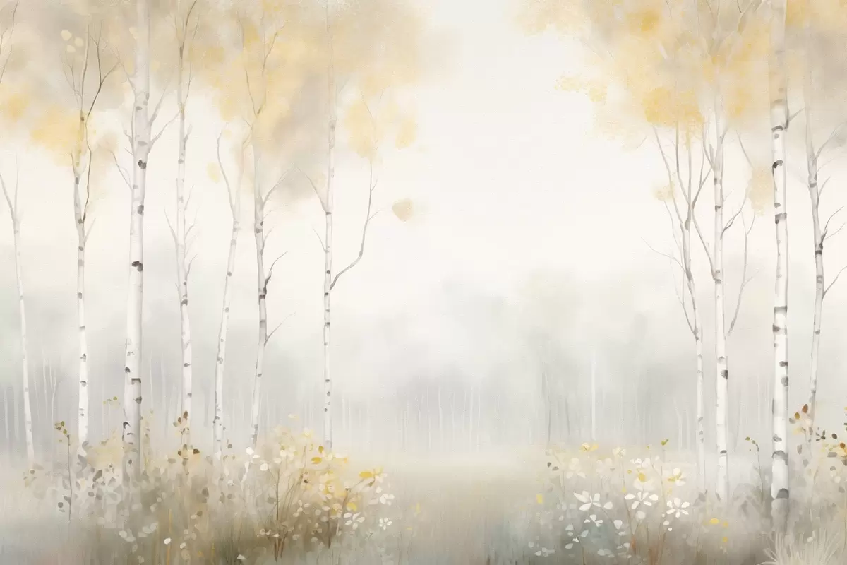 Poster Las rzadkich drzew we mgle, delikatne odcienie światła Nr f48623