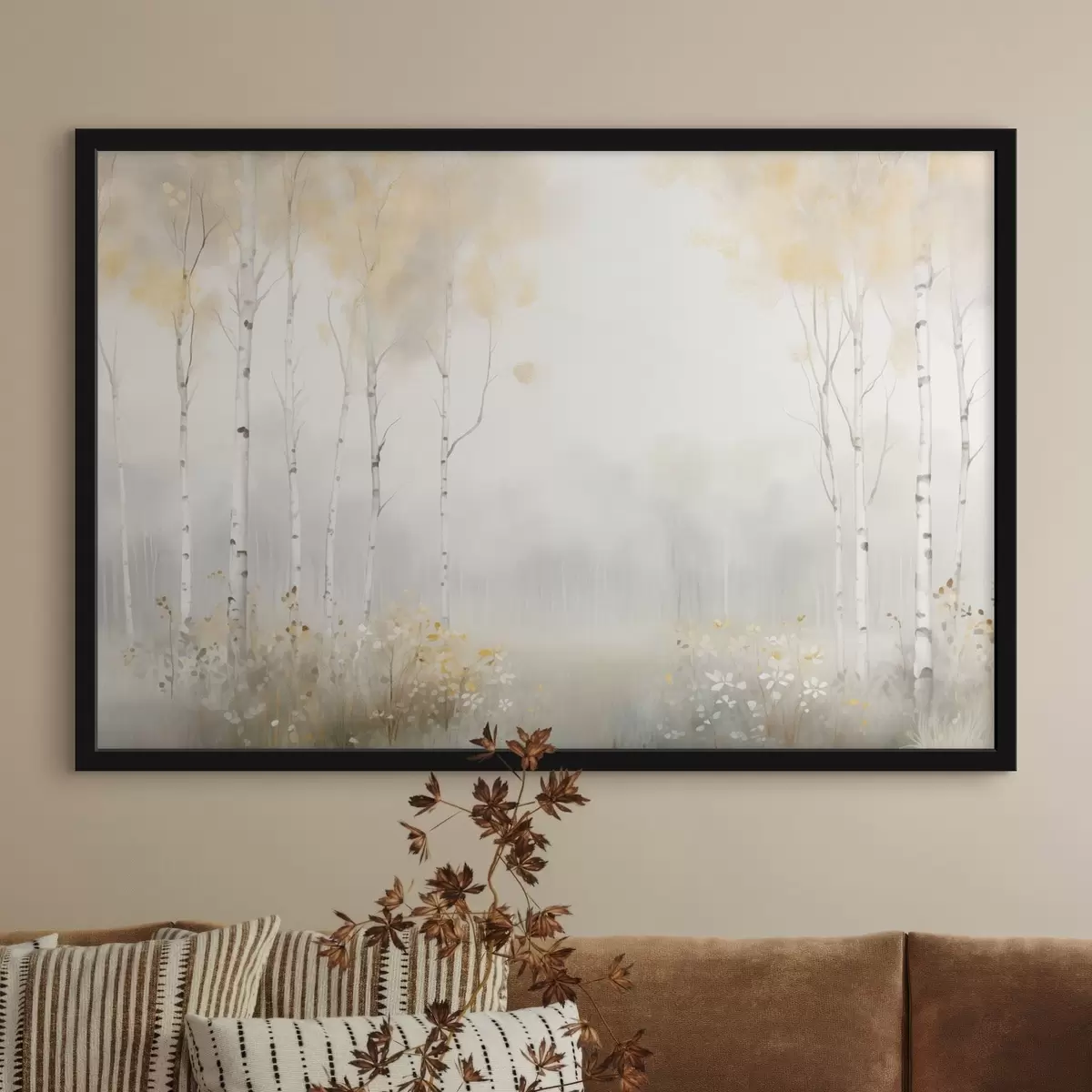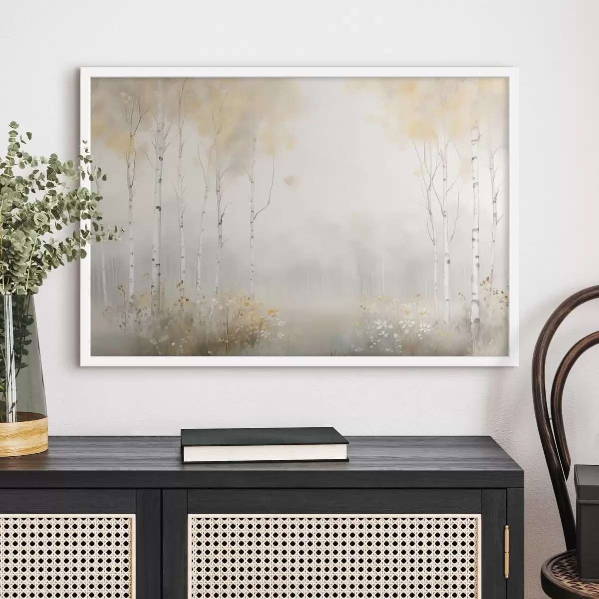 Plakat Las rzadkich drzew we mgle, delikatne odcienie światła f48623