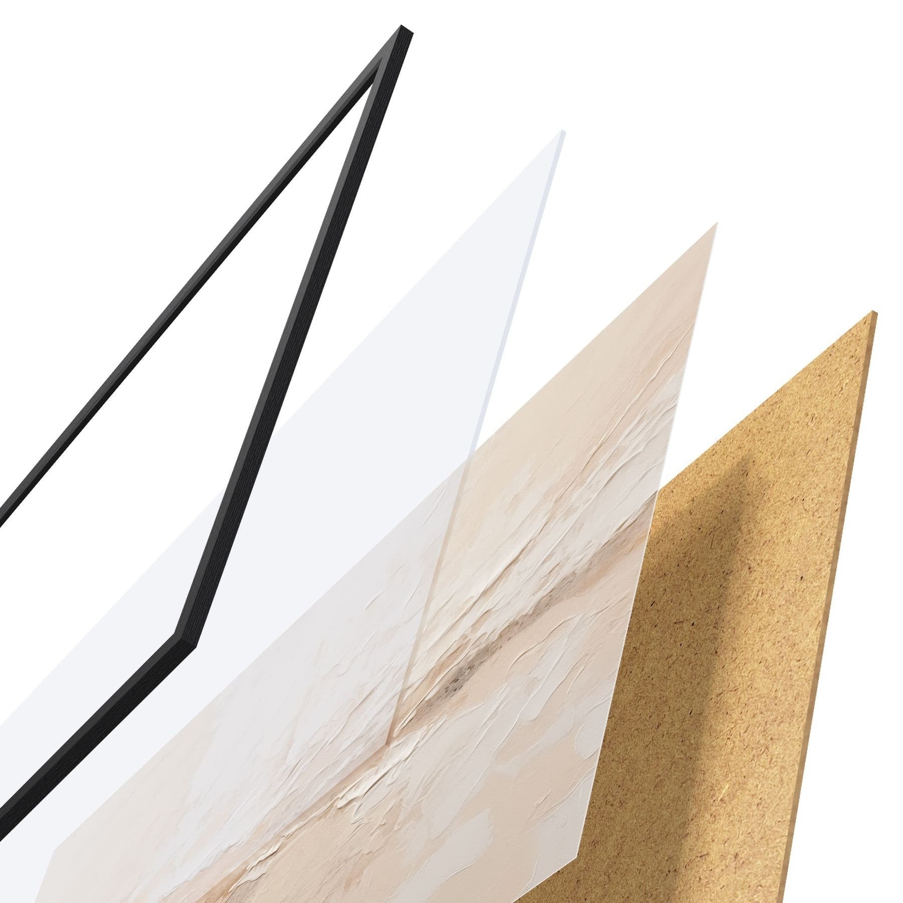 Plakat składa się z ramy, pleksi, wydrukowanego obrazu i podkładu z płyty wiórowej. Plakat można natychmiast zawiesić na ścianie dzięki uchwytom z tyłu.