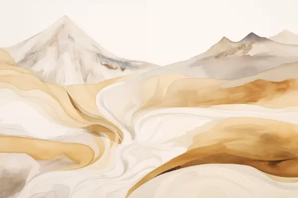 Poster Stylizowany pejzaż z górami i płynnymi liniami Nr f48626
