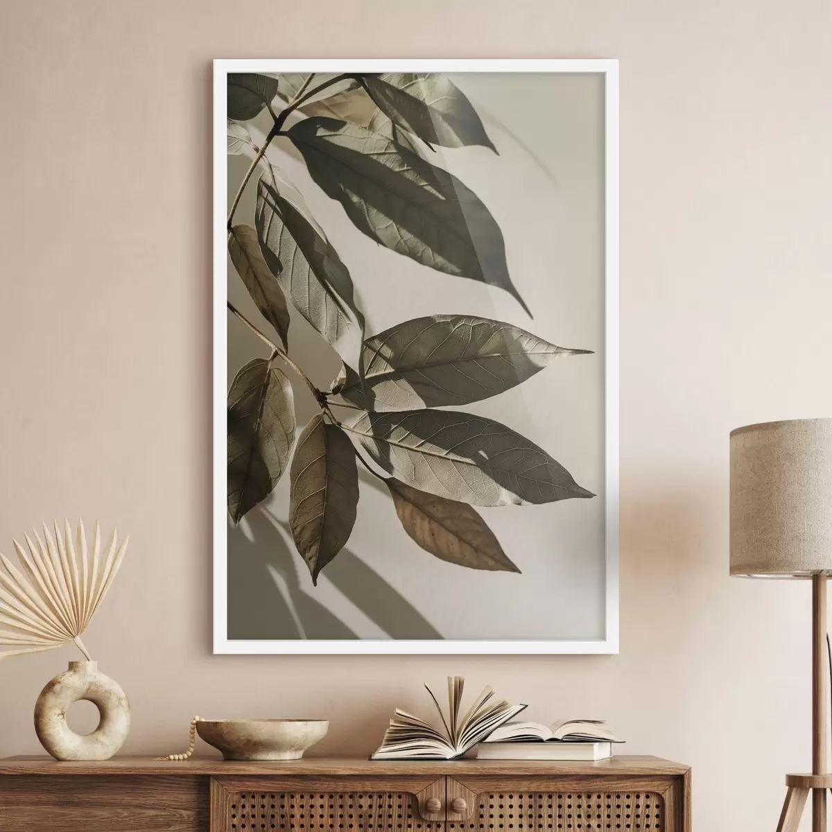 Poster Gałązki oliwne, beżowe i zielone motywy roślinne Nr f48627