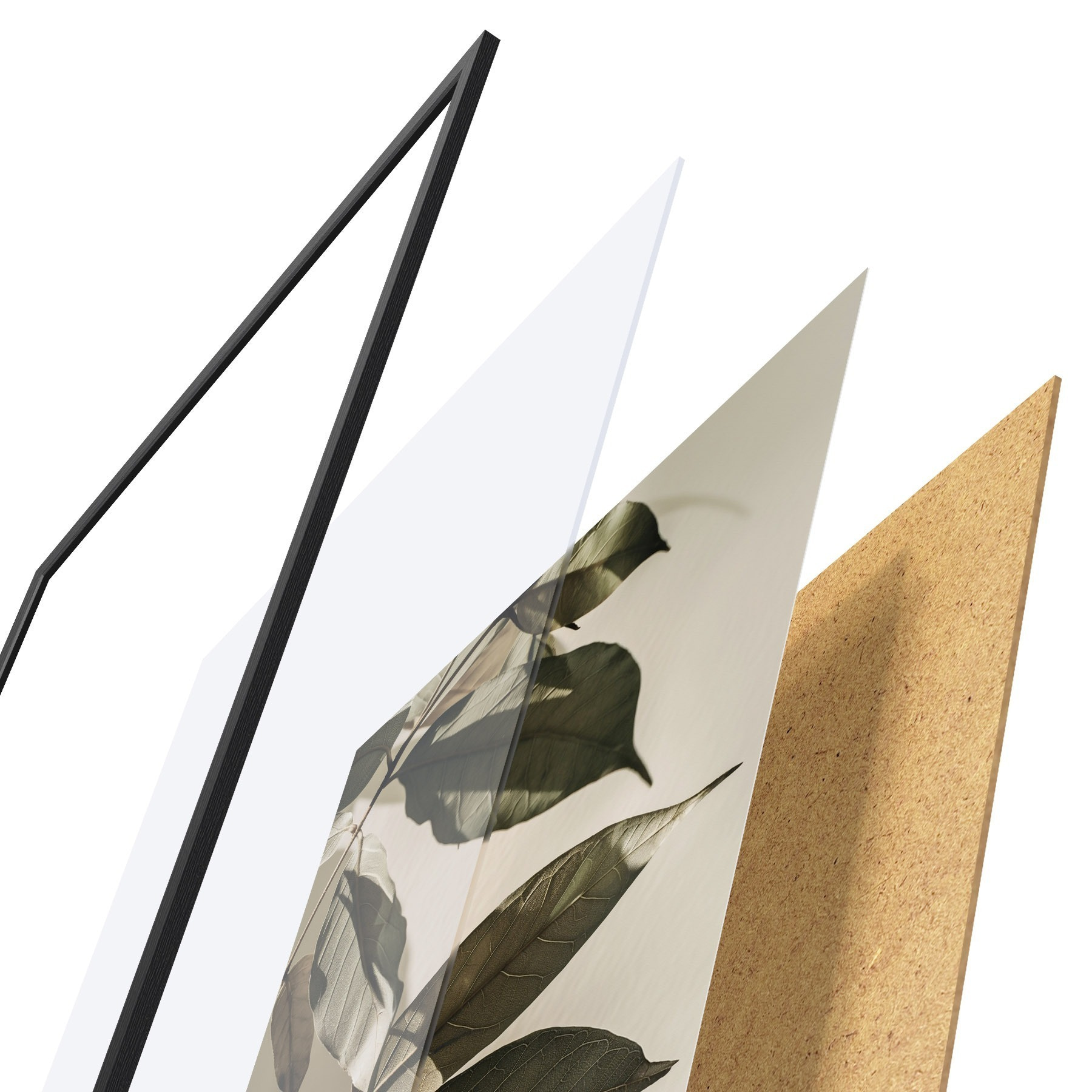 Plakat składa się z ramy, pleksi, wydrukowanego obrazu i podkładu z płyty wiórowej. Plakat można natychmiast zawiesić na ścianie dzięki uchwytom z tyłu.