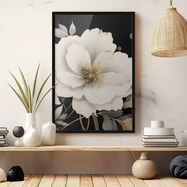 Plakat Białe kwiaty na ciemnym tle f48633