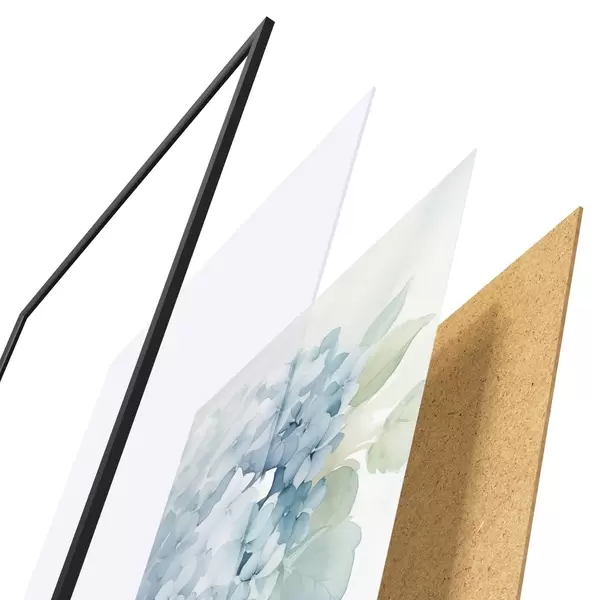 Plakat składa się z ramy, pleksi, wydrukowanego obrazu i podkładu z płyty wiórowej. Plakat można natychmiast zawiesić na ścianie dzięki uchwytom z tyłu.