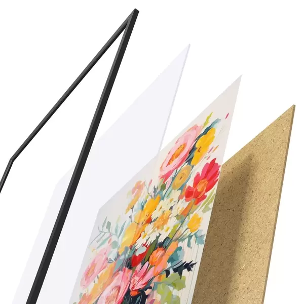 Plakat składa się z ramy, pleksi, wydrukowanego obrazu i podkładu z płyty wiórowej. Plakat można natychmiast zawiesić na ścianie dzięki uchwytom z tyłu.