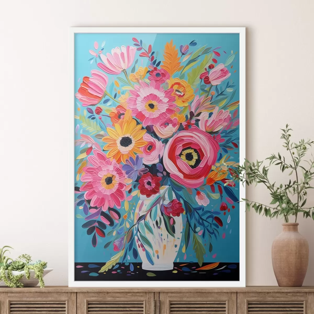 Sprzedajemy obrazy na blejtramie - jest to drewniana rama, na którą naciągnięte jest płótno. Tego obrazu nie trzeba oprawiać; można go powiesić bezpośrednio na ścianie.
