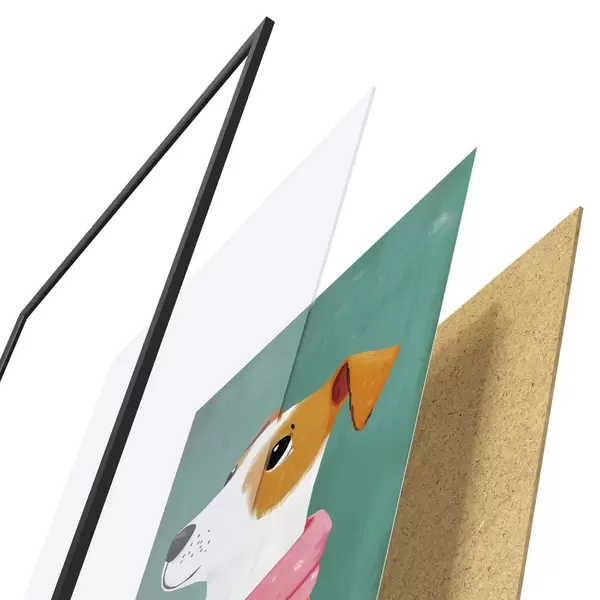 Plakat składa się z ramy, pleksi, wydrukowanego obrazu i podkładu z płyty wiórowej. Plakat można natychmiast zawiesić na ścianie dzięki uchwytom z tyłu.