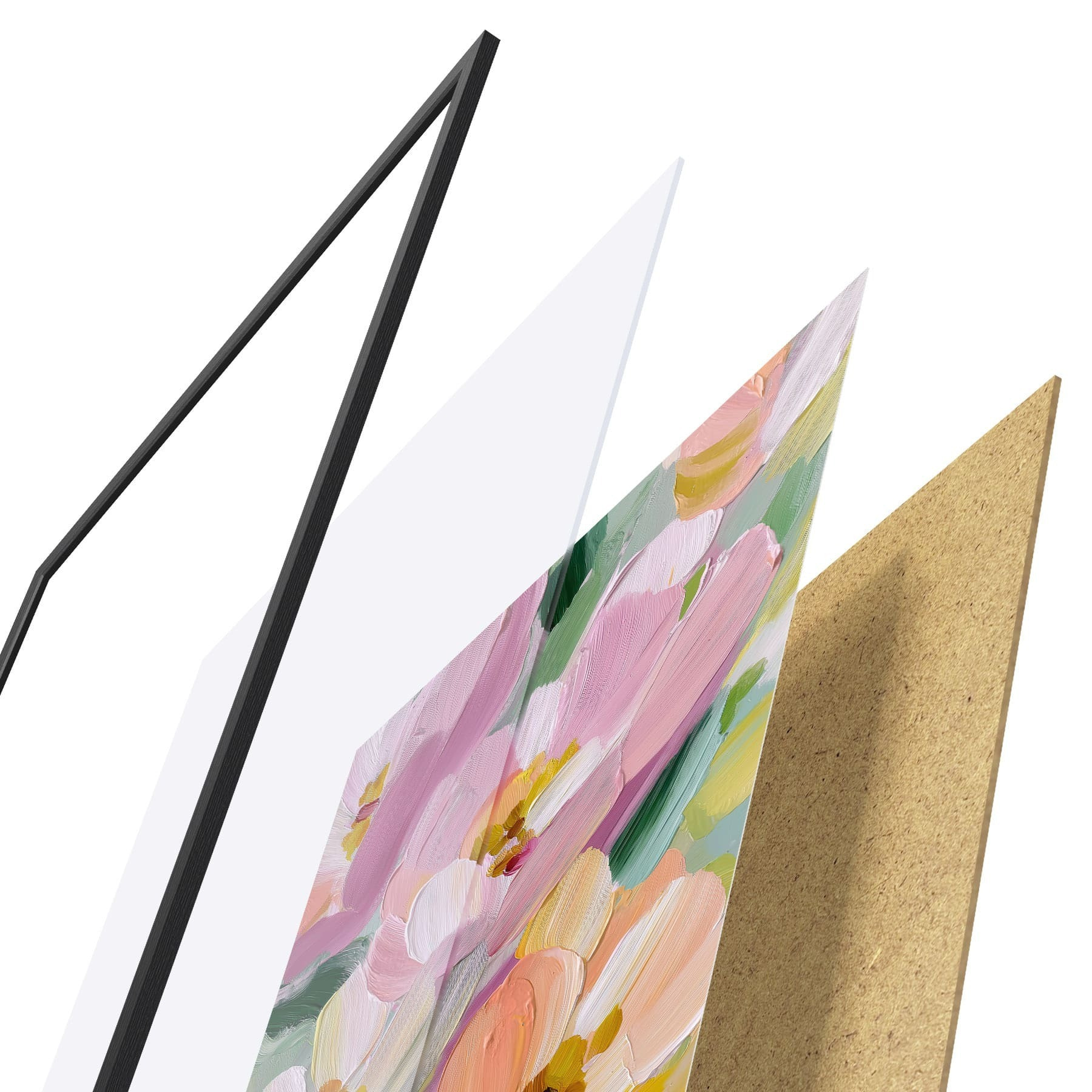 Plakat składa się z ramy, pleksi, wydrukowanego obrazu i podkładu z płyty wiórowej. Plakat można natychmiast zawiesić na ścianie dzięki uchwytom z tyłu.