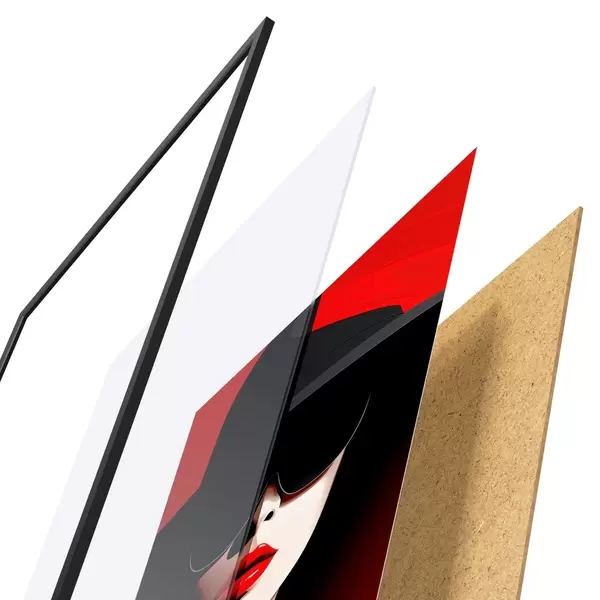 Plakat składa się z ramy, pleksi, wydrukowanego obrazu i podkładu z płyty wiórowej. Plakat można natychmiast zawiesić na ścianie dzięki uchwytom z tyłu.