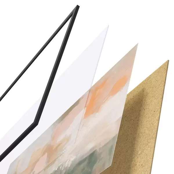 Plakat składa się z ramy, pleksi, wydrukowanego obrazu i podkładu z płyty wiórowej. Plakat można natychmiast zawiesić na ścianie dzięki uchwytom z tyłu.