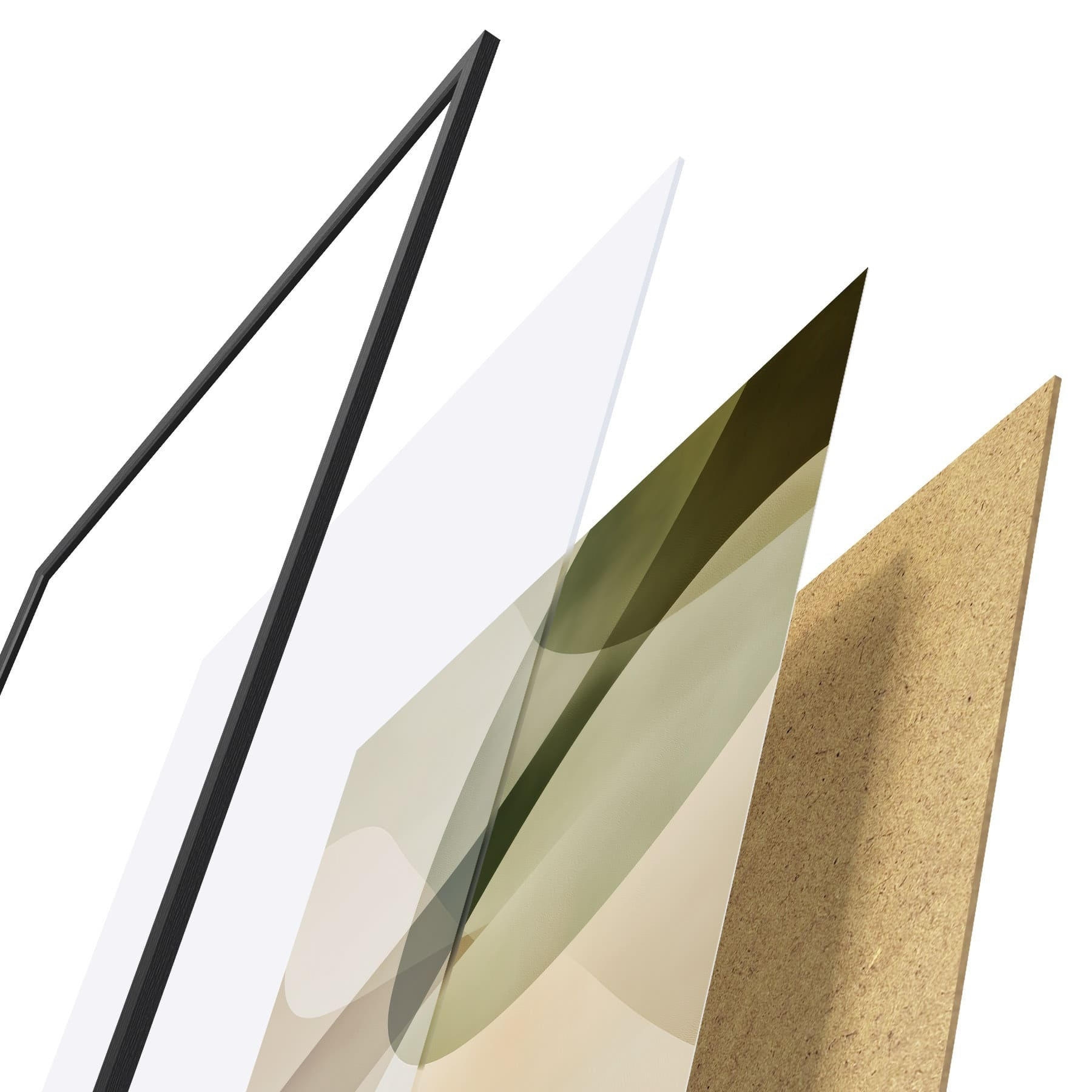 Plakat składa się z ramy, pleksi, wydrukowanego obrazu i podkładu z płyty wiórowej. Plakat można natychmiast zawiesić na ścianie dzięki uchwytom z tyłu.