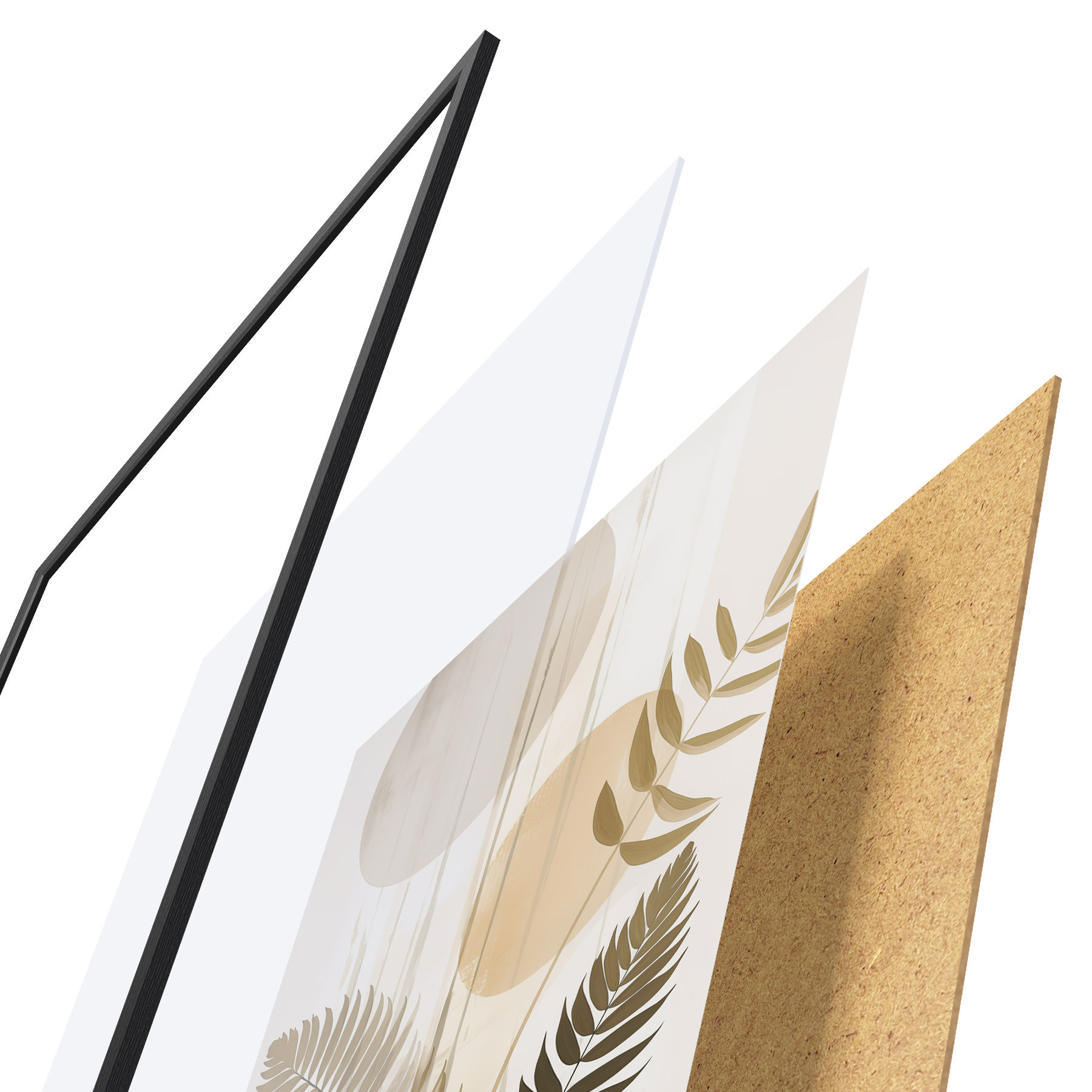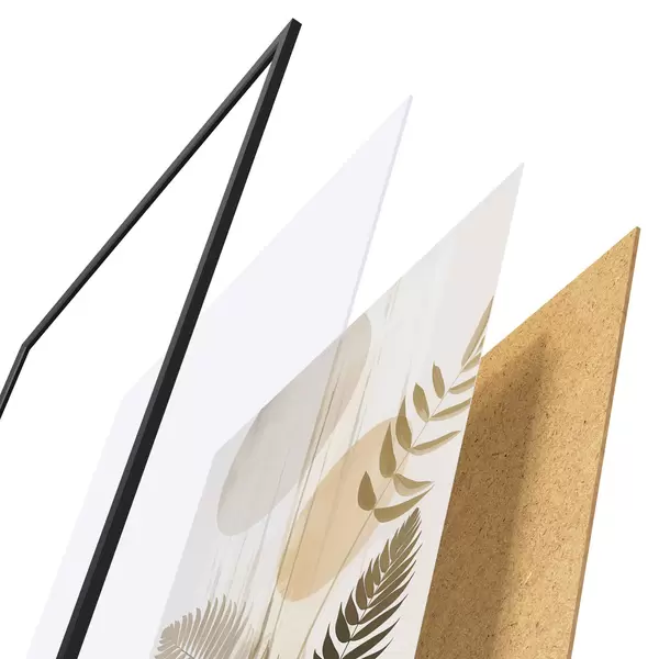 Plakat składa się z ramy, pleksi, wydrukowanego obrazu i podkładu z płyty wiórowej. Plakat można natychmiast zawiesić na ścianie dzięki uchwytom z tyłu.