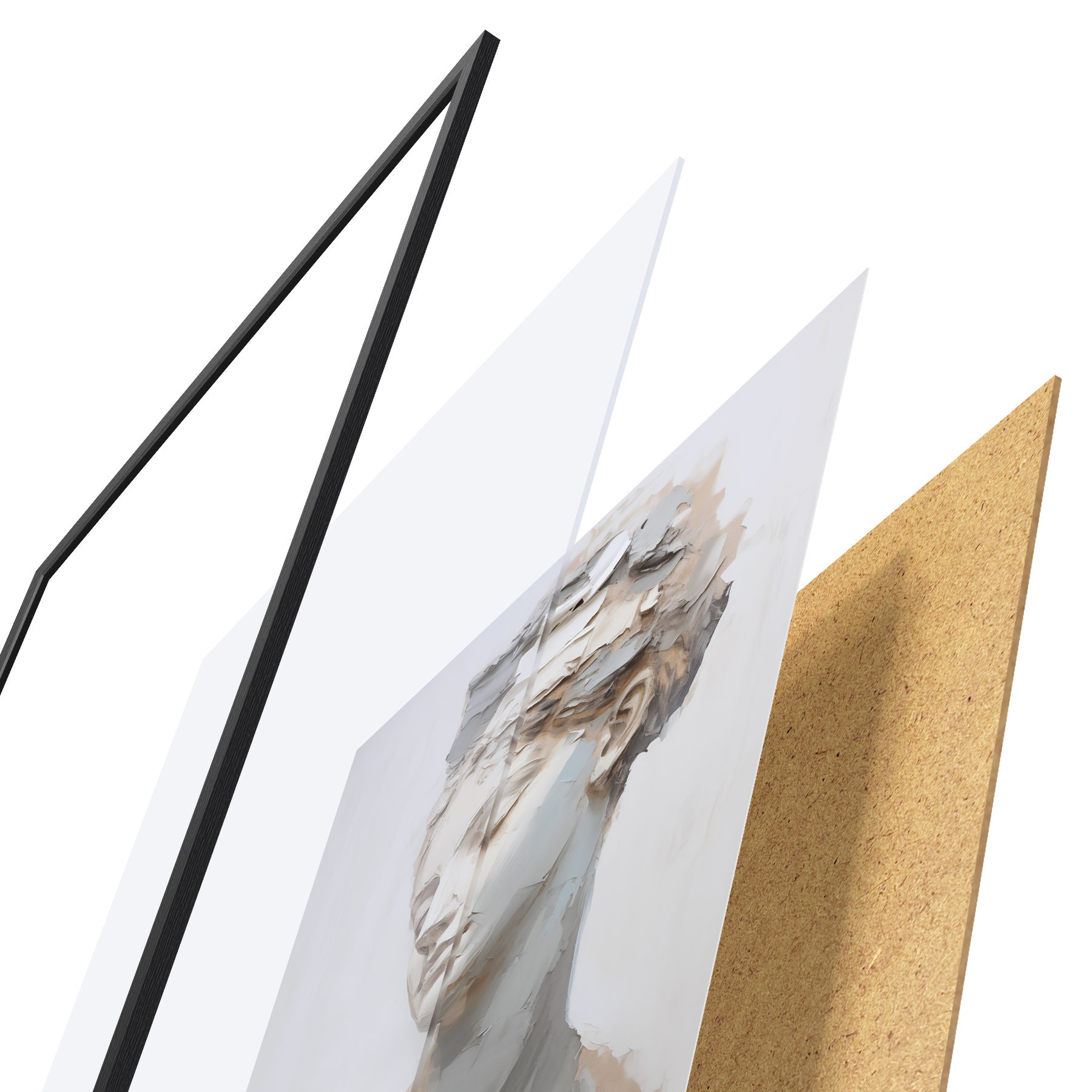 Plakat składa się z ramy, pleksi, wydrukowanego obrazu i podkładu z płyty wiórowej. Plakat można natychmiast zawiesić na ścianie dzięki uchwytom z tyłu.