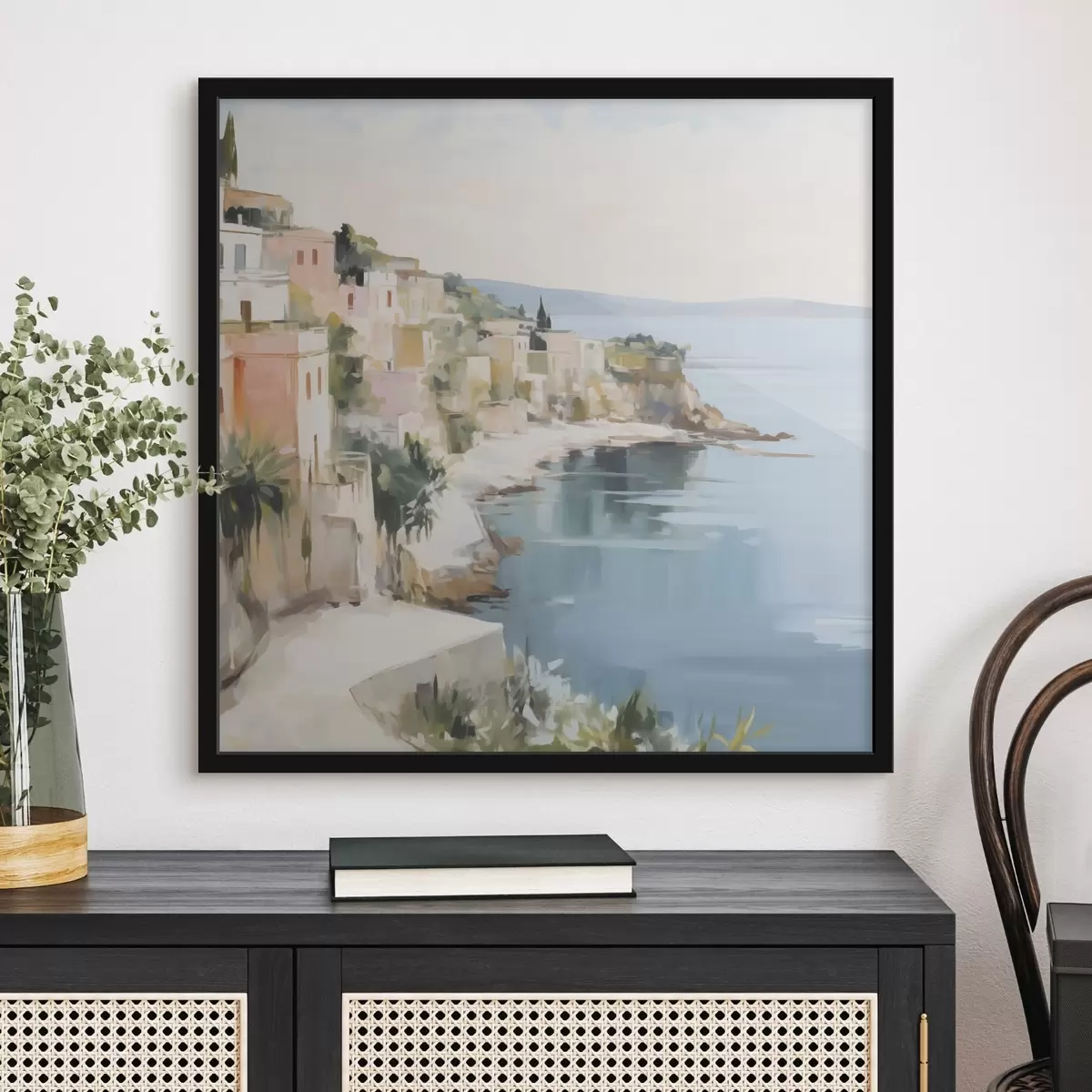 Poster Krajobraz nadmorskiego miasteczka – imitacja obrazu Nr f48675