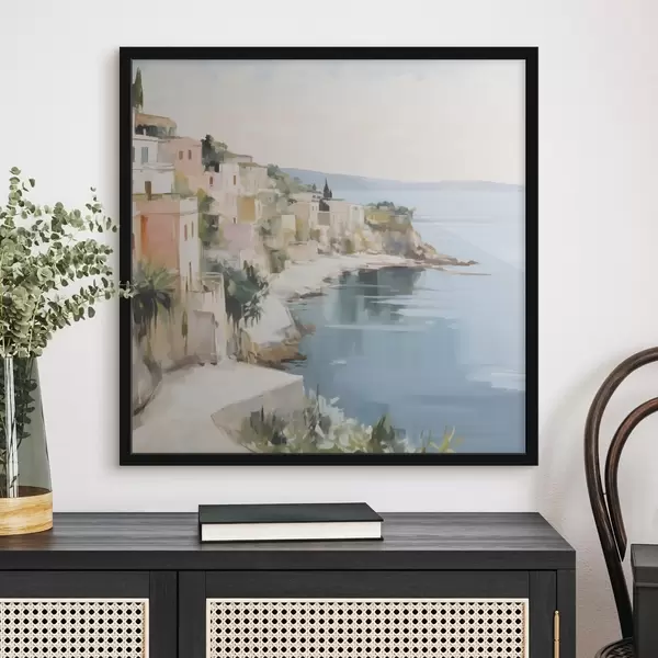 Plakat Krajobraz nadmorskiego miasteczka – imitacja obrazu f48675
