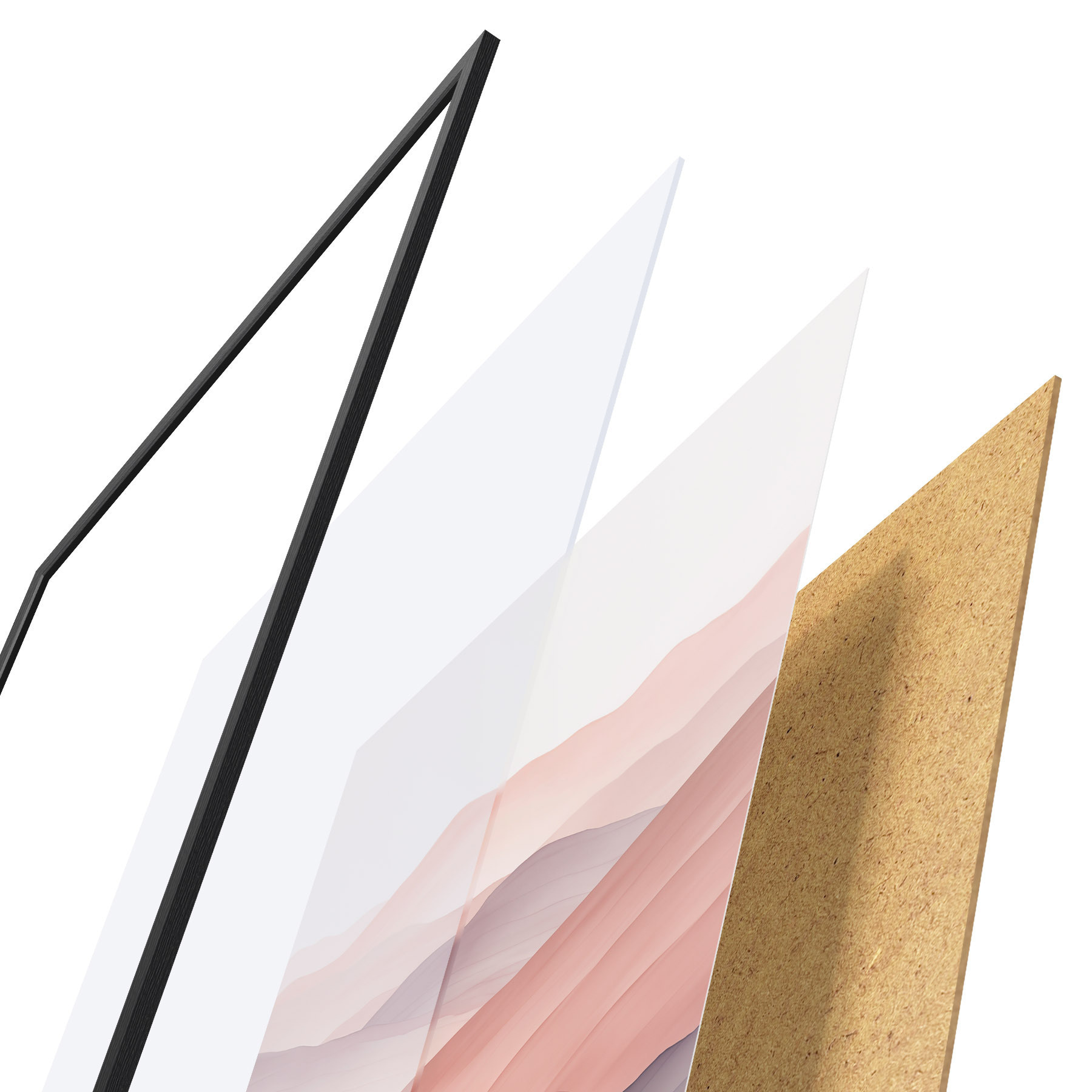 Plakat składa się z ramy, pleksi, wydrukowanego obrazu i podkładu z płyty wiórowej. Plakat można natychmiast zawiesić na ścianie dzięki uchwytom z tyłu.