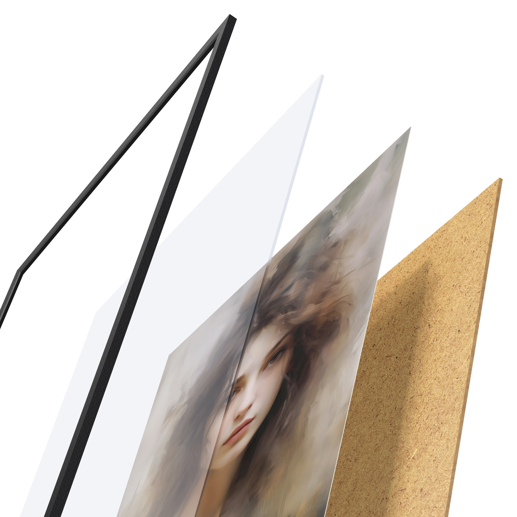 Plakat składa się z ramy, pleksi, wydrukowanego obrazu i podkładu z płyty wiórowej. Plakat można natychmiast zawiesić na ścianie dzięki uchwytom z tyłu.