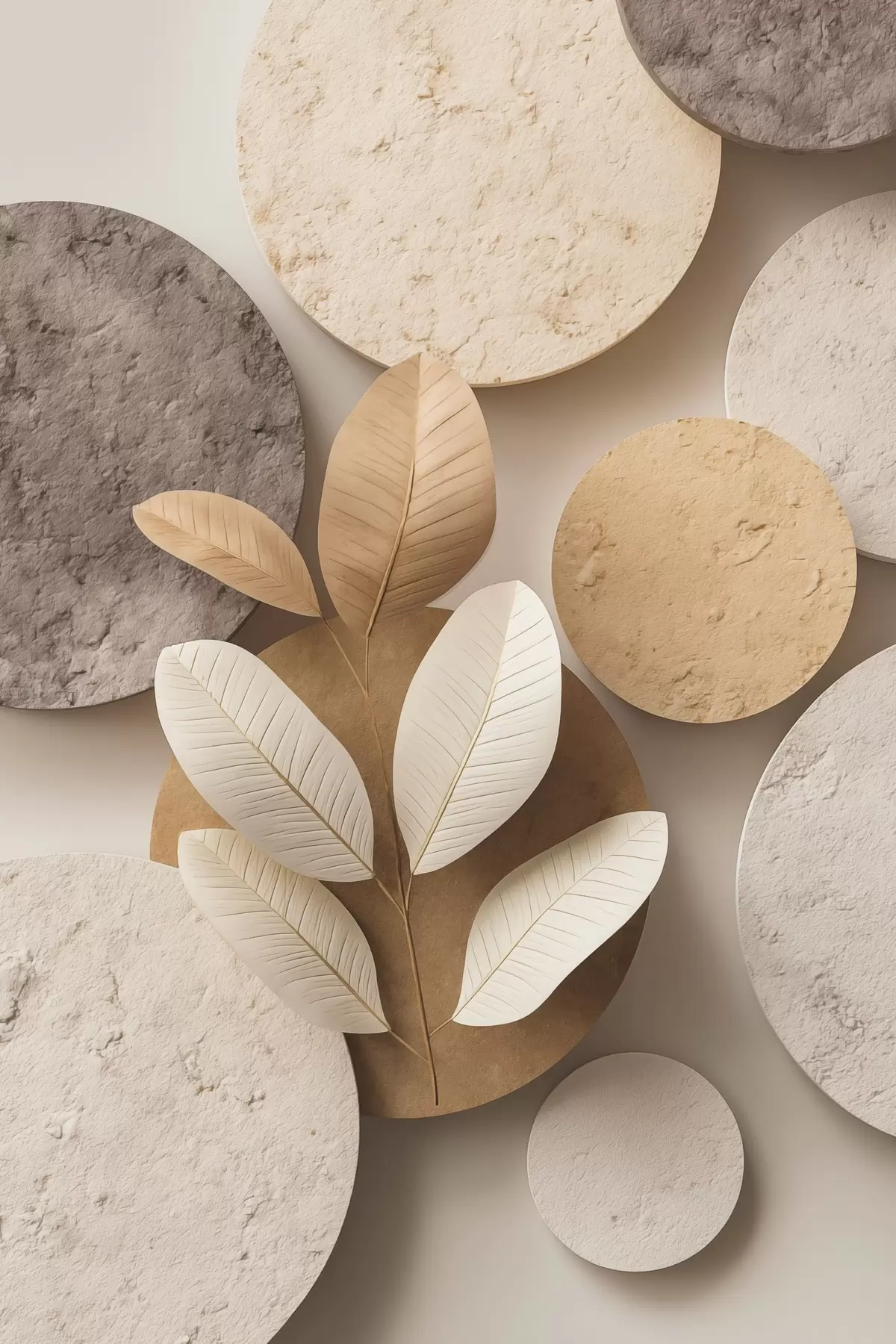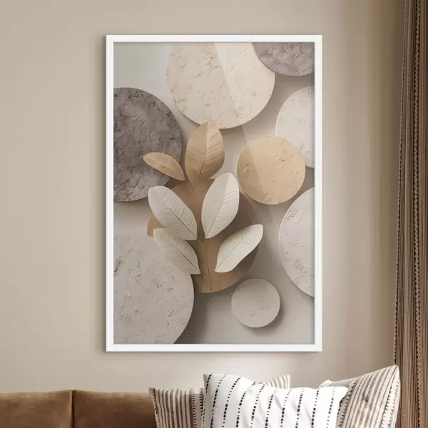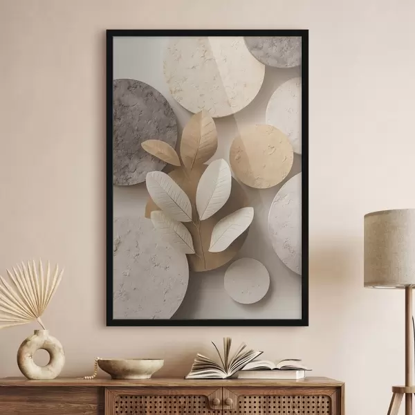 Poster Kompozycja z liśćmi i okręgami Nr f48691