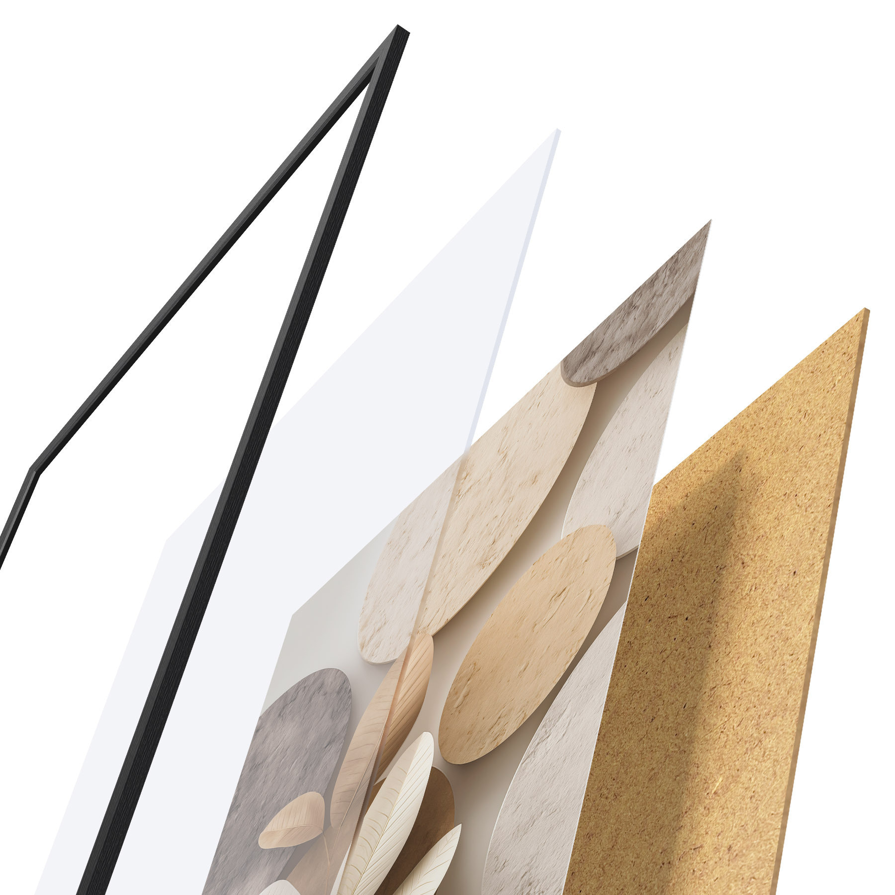 Plakat składa się z ramy, pleksi, wydrukowanego obrazu i podkładu z płyty wiórowej. Plakat można natychmiast zawiesić na ścianie dzięki uchwytom z tyłu.