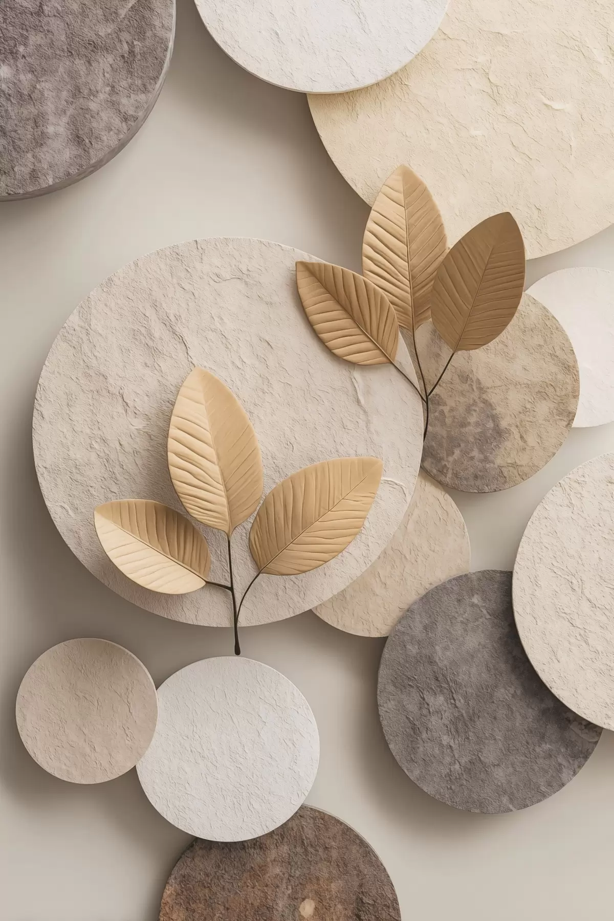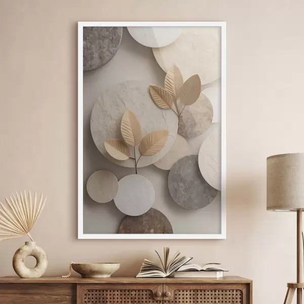 Poster Kompozycja z liśćmi i okręgami Nr f48692