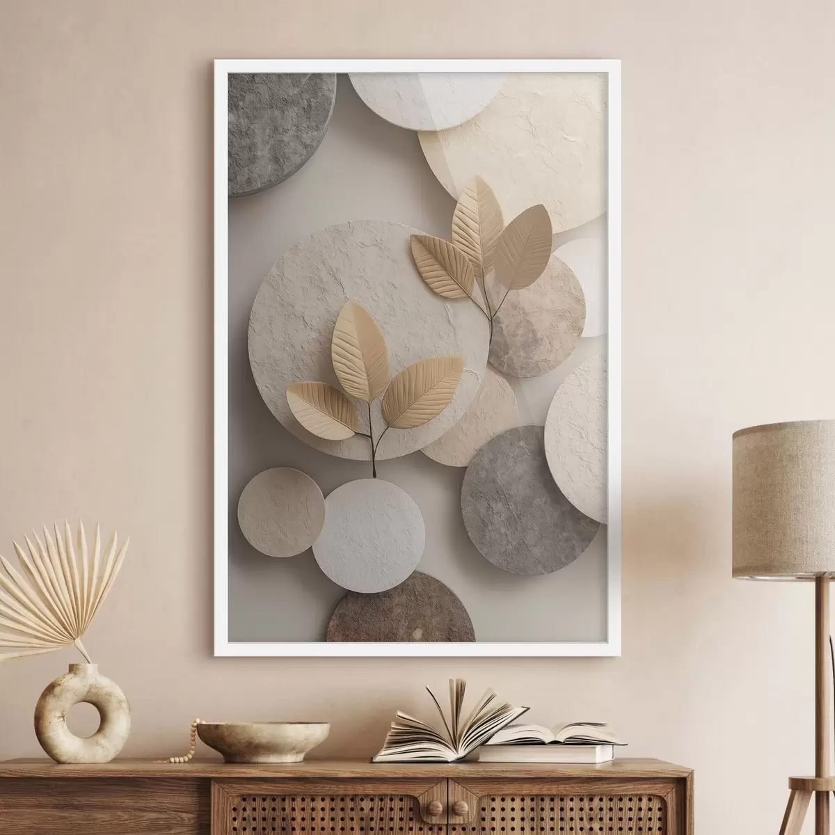 Plakat Kompozycja z liśćmi i okręgami f48692